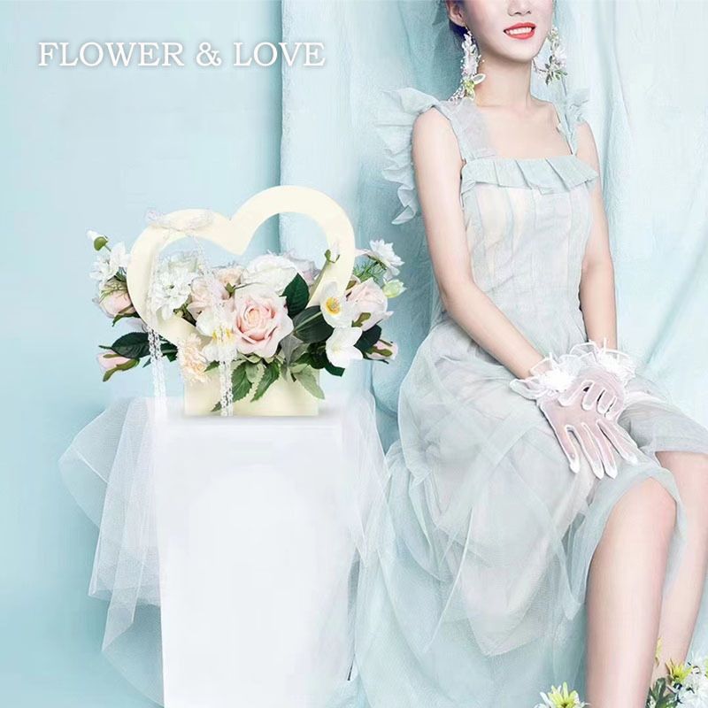 5/10Pcs Heart-Shaped Paper Flower Boxes with Handles, Gift Bags for Weddings Valentine's Day Mother's Day Graduations & Parties