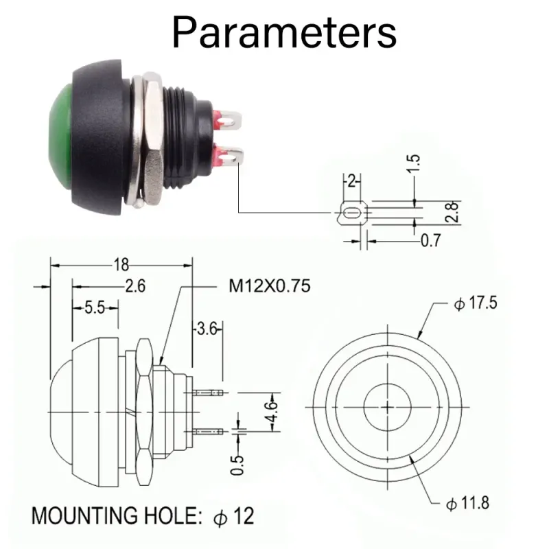 Mounting Hole Diameter: 12mm