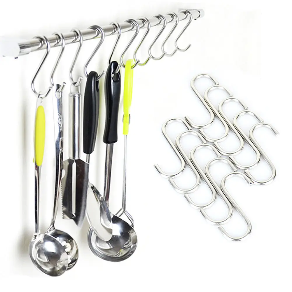 5/10 Pcs Stainless Steel Hooks Metal S Shaped Hooks Kitchen Railing S Hanger Hook  Pot Pan Hanger Hooks & Rails