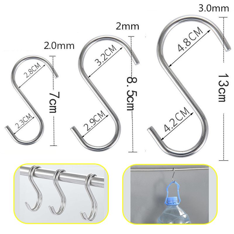 5/10Pcs S Shaped Hooks Metal S Shaped Hooks S Hook Stainless Steel Multifunctional Sundries Storage Hangers Holder Hooks & Ra