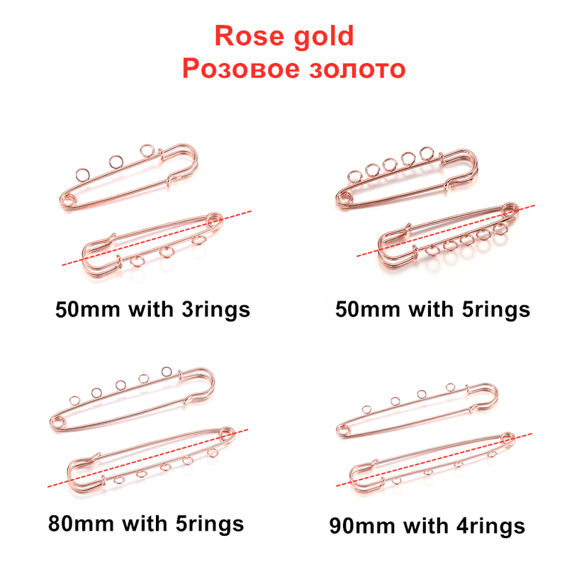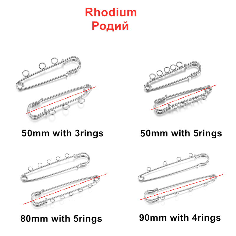 5/10pcs Safety Pins Brooch Blank Base Brooch Pins 50/80/90mm Pins 3/5 Rings Jewelry Pin for Jewelry Making Supplies Accessories