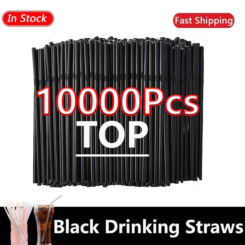 50-10000Pcs Black Drinking Straws, Cocktail rietjes Milk Tea Bar Party Wedding Kitchen Home Accessory Beverage Straw Wholesale