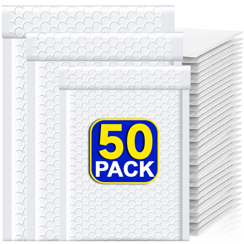 10-50Pcs Bubble Envelopes White Foam Shipping Bags Poly Bubble Mailers Pad Self Seal Packing Bags for Magazine 11cm 15cm 23cm