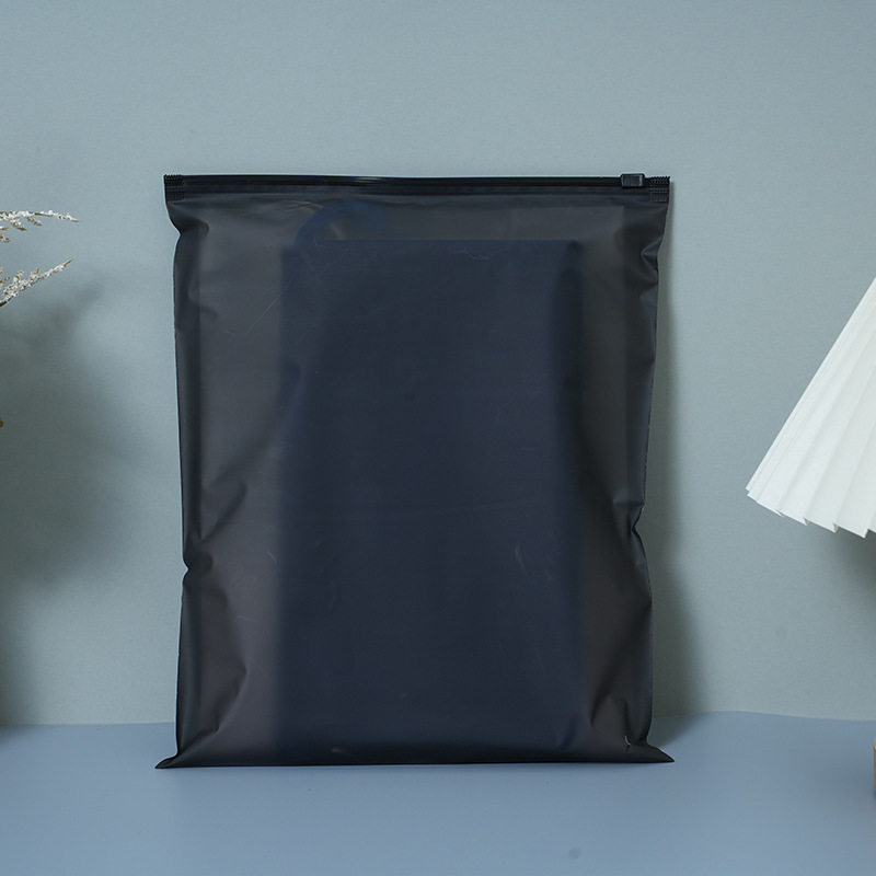 50 black zip-lock storage bags, suitable for storing clothes. Made of PE self-sealing plastic. Logo printing service available.