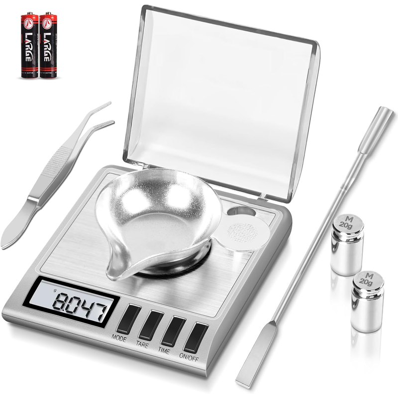 【Calibration Weights Included】 The KD-50 will arrive with 2×20g calibration weights. Follow the user manual, easily re-calibrate it when you notice any inaccuracies in your scale. Also the included Double-ended Scoop, Tweezers, Weighing Pan to make difficult measurement easier.