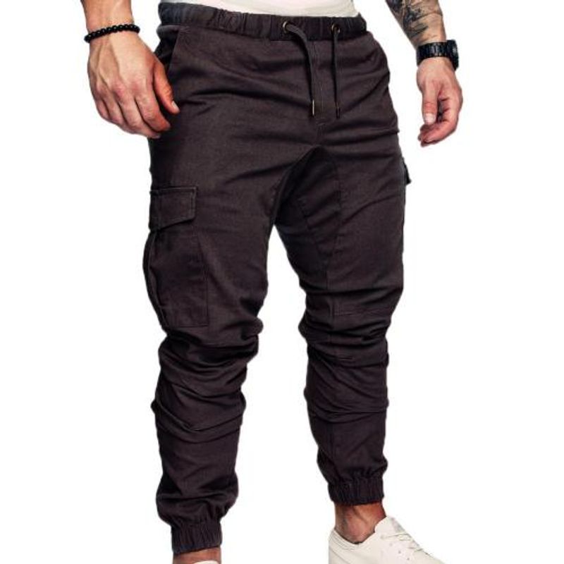 Men Casual Solid Color Pockets Waist Drawstring Ankle Tied Skinny Cargo Pants