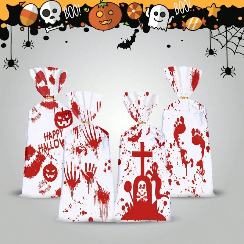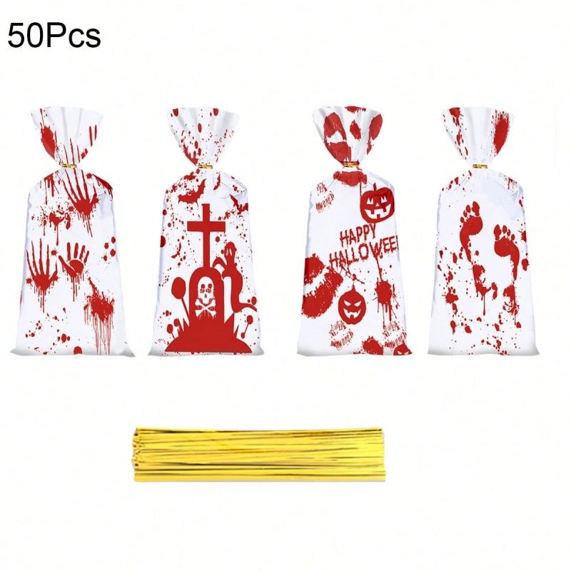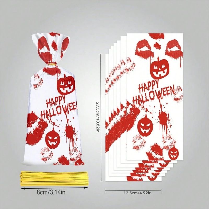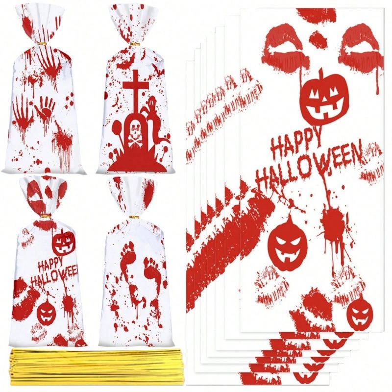 50-Pack Halloween Cellophane Candy Bags 10.5 X 4.9 Inch Halloween-Themed Gift Bags, Includes 50 Gold Twist Ties, Halloween Party Supplies Trick-or-Treat Party Favor Bags