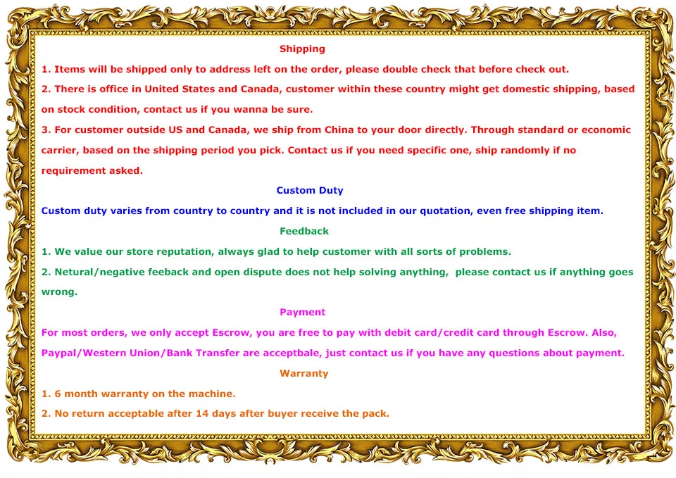 Please note that delivery times are estimates and may vary due to customs procedures, carrier delays, weather conditions, or other unforeseen circumstances.