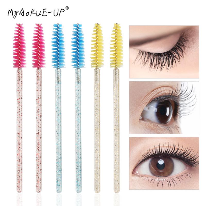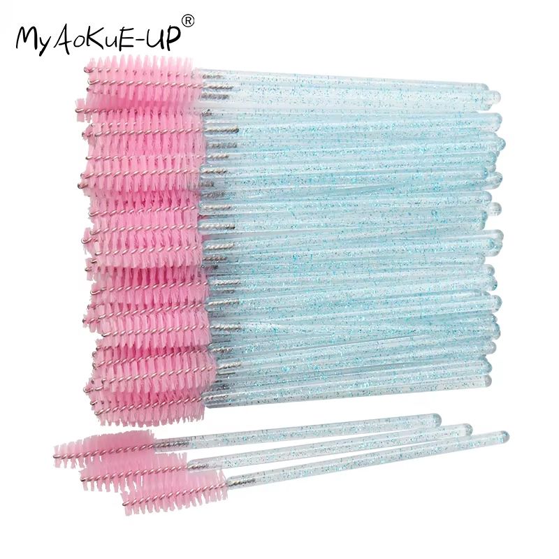 50 pcs Cosmetic Eyelash Brush Crystal Mascara Wands Applicator Diamond Eyelashes brushes Disposable Make Up brushes Tools