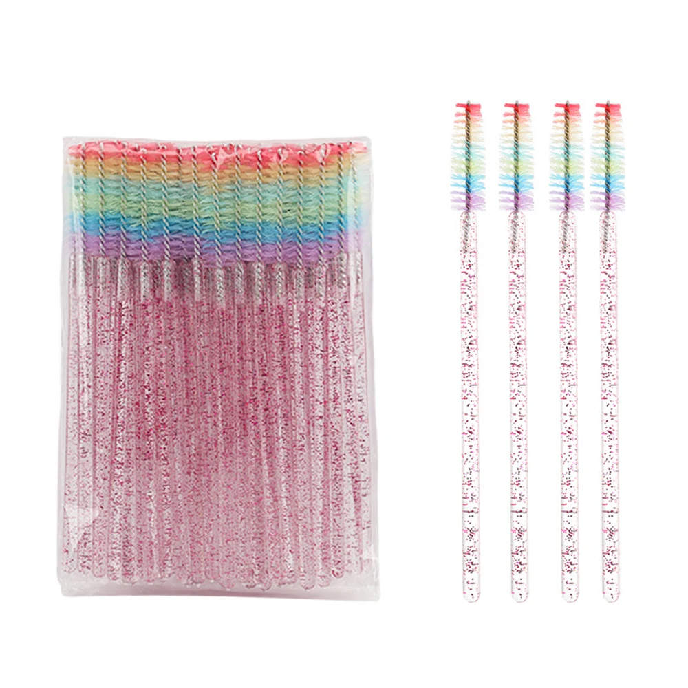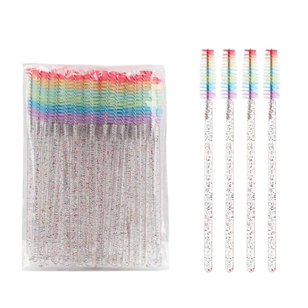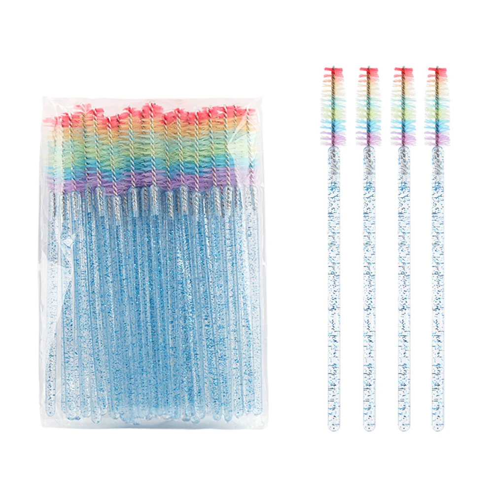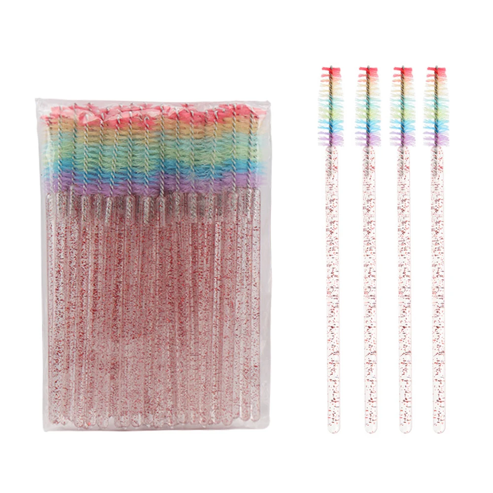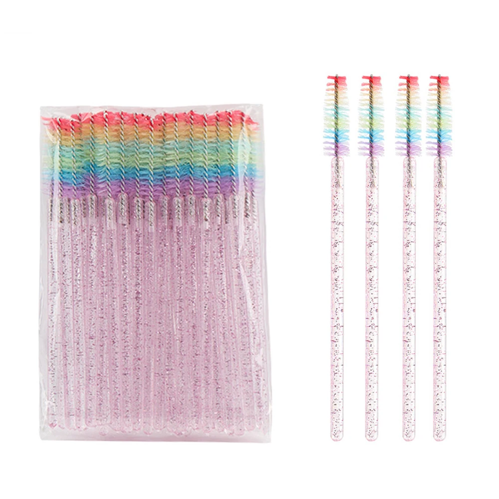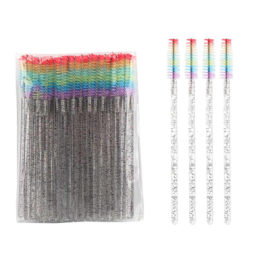 50 Pcs Disposable Colorful Rainbow Crystal Eyelash Extension Brushes Mascara Wand Applicator Eyebrow Comb Microbrush Makeup Tool