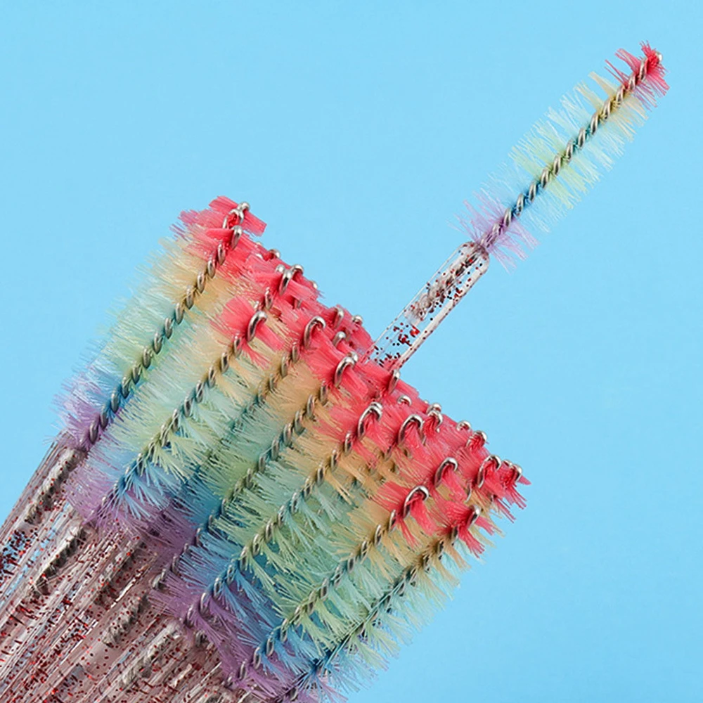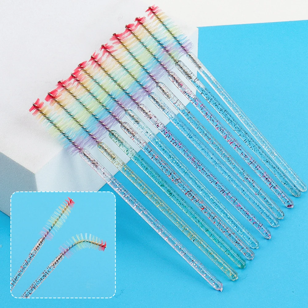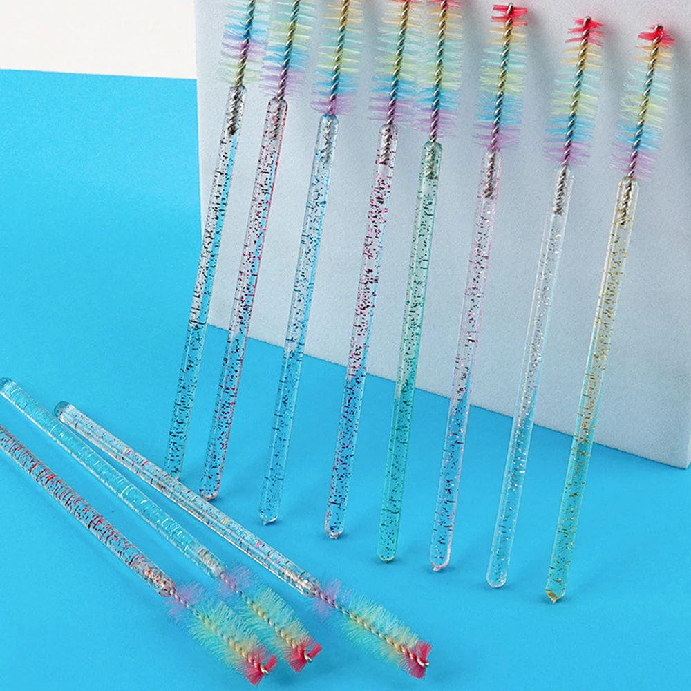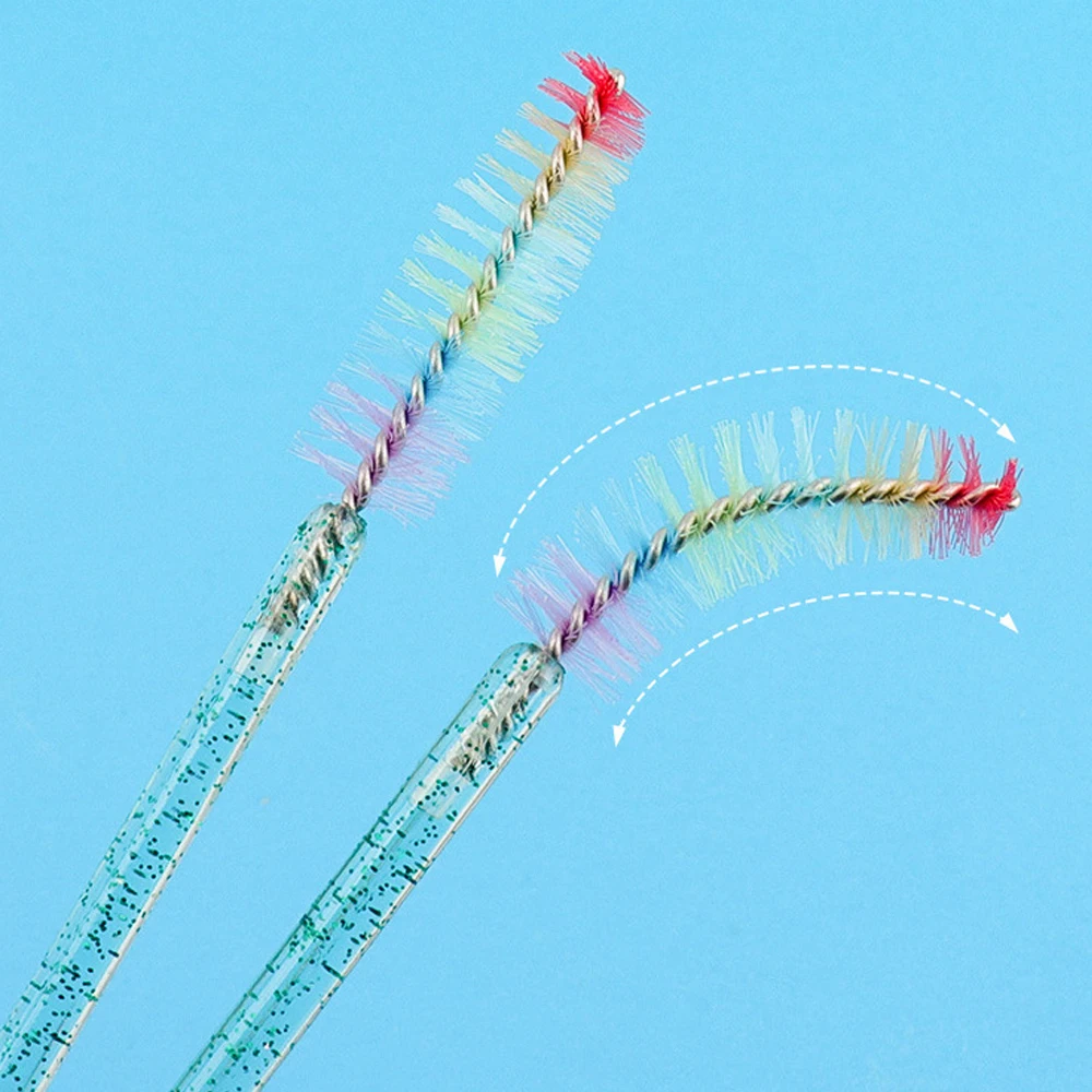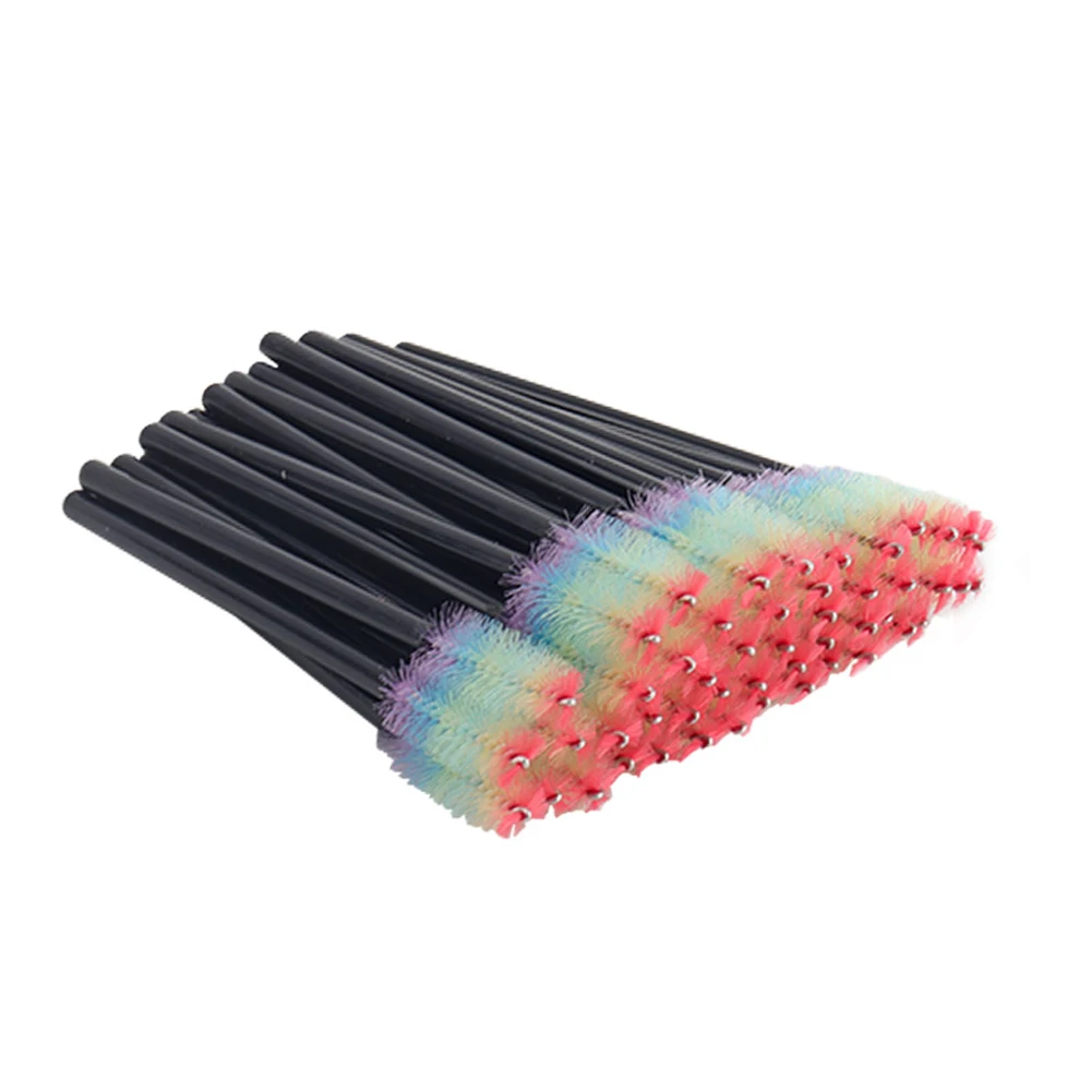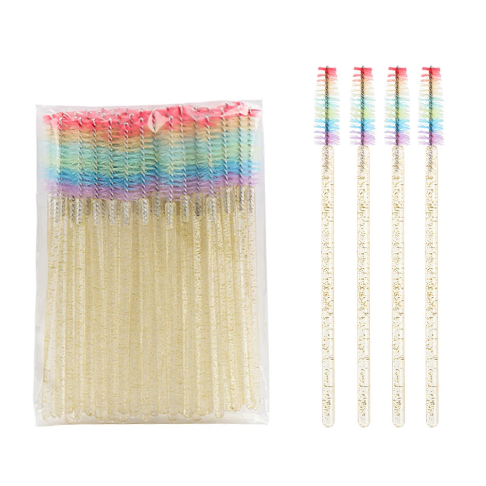 50 Pcs Disposable Colorful Rainbow Crystal Eyelash Extension Brushes Mascara Wand Applicator Eyebrow Comb Microbrush Makeup Tool