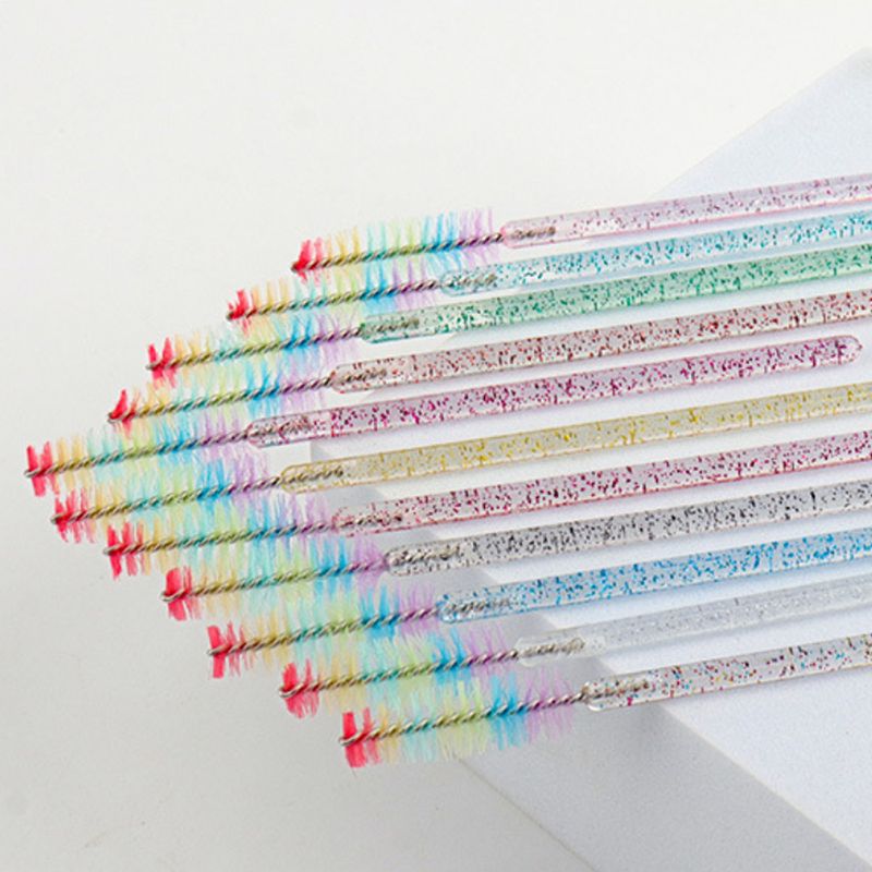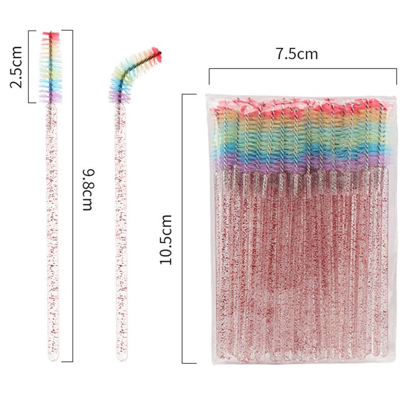 50 Pcs Disposable Colorful Rainbow Crystal Eyelash Extension Brushes Mascara Wand Applicator Eyebrow Comb Microbrush Makeup Tool