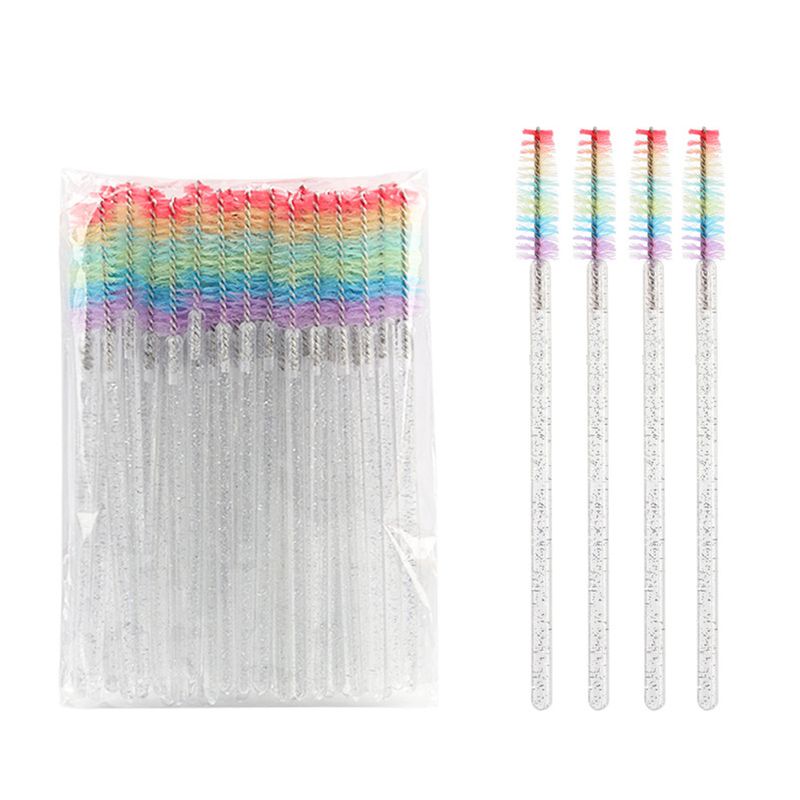 50 Pcs Disposable Colorful Rainbow Crystal Eyelash Extension Brushes Mascara Wand Applicator Eyebrow Comb Microbrush Makeup Tool