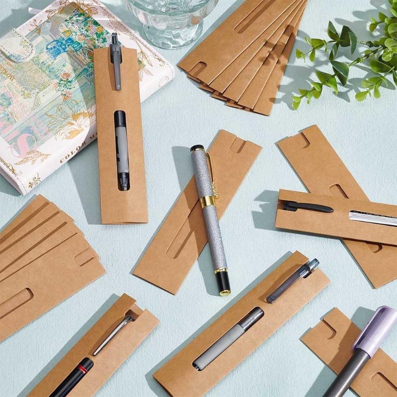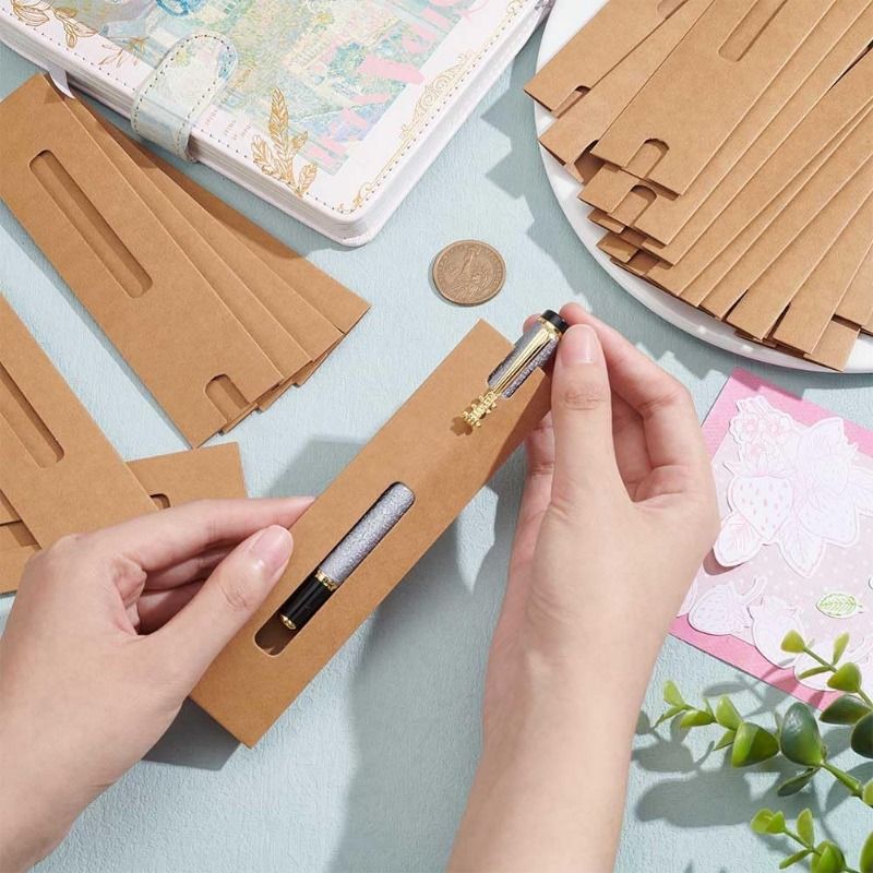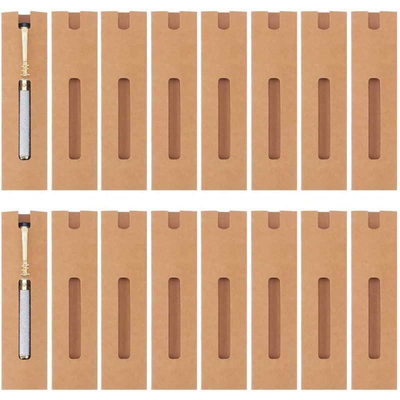 50 Pcs Kraft Pen Gift Boxes Burlywood Slip-in Pen Packaging Box with Clear Window for Pencil Ballpoint Fountain Pen Display