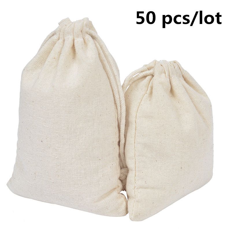50 Pcs/Lot Cotton Drawstring Storage Bags Christms Wedding Gift DIY Plain Pouch Reusable Home Organize Dustbag 8x10 10x12 10x15