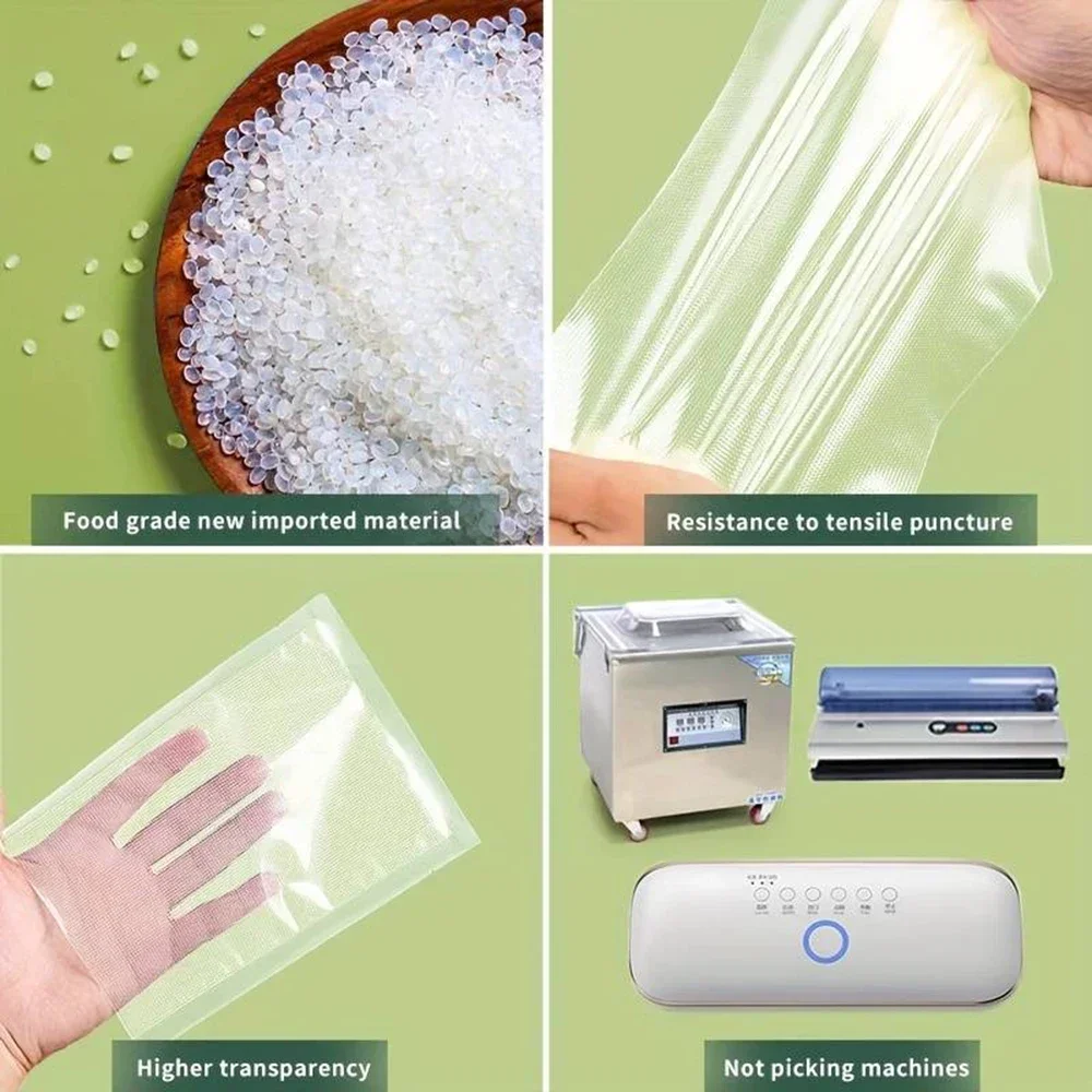 【Compatible With All Vacuum Sealers】:Work with all suction vac heat sealer,Textured on one side and crystal clear on  the other                                                                        for maximum air removal.Food saver bags.