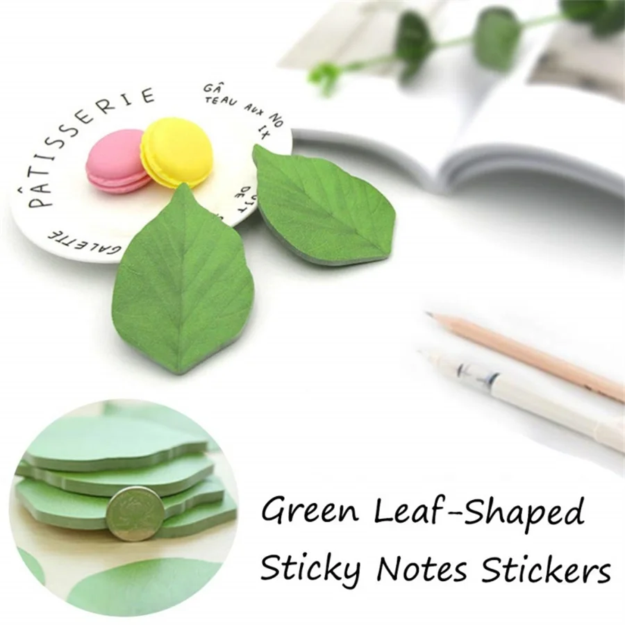 50 Sheets/Pad Creative Green Leaf Shaped Sticky Notepad, Photo Wall Refrigerator Decoration Sticker, Novelty Memo Note Pad for H