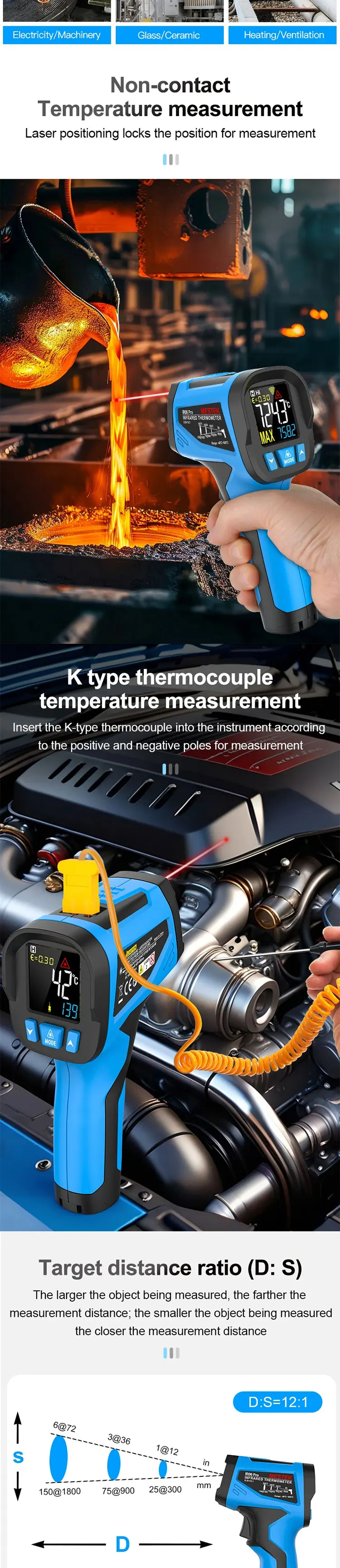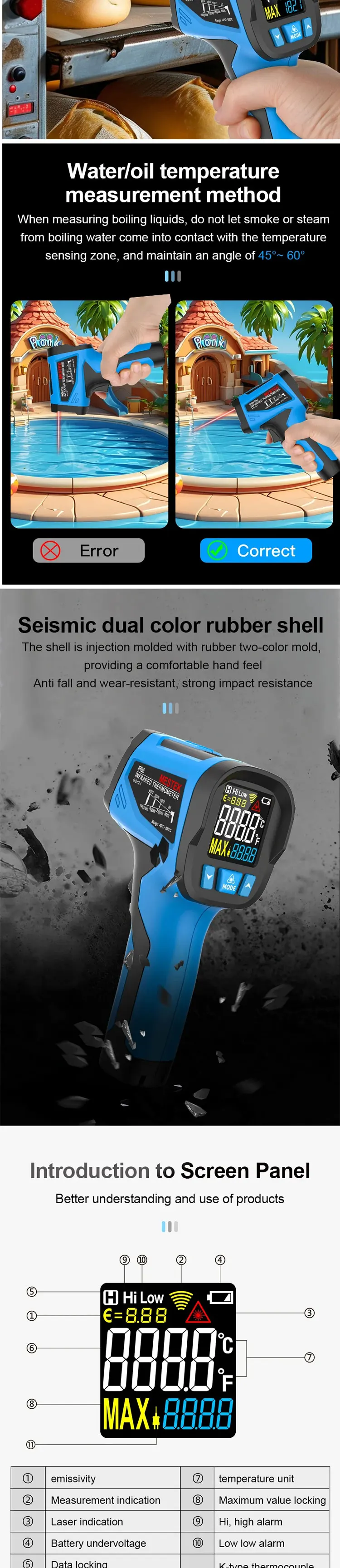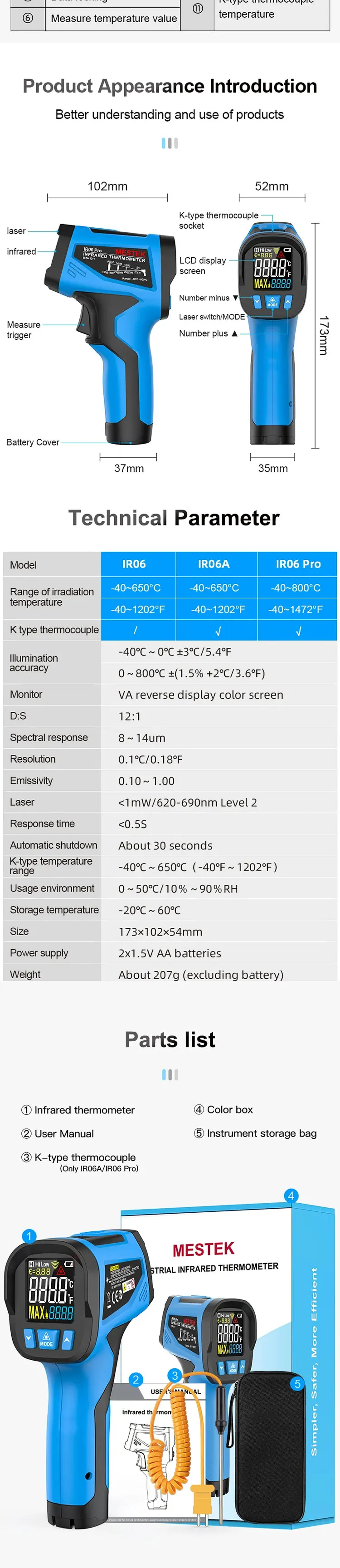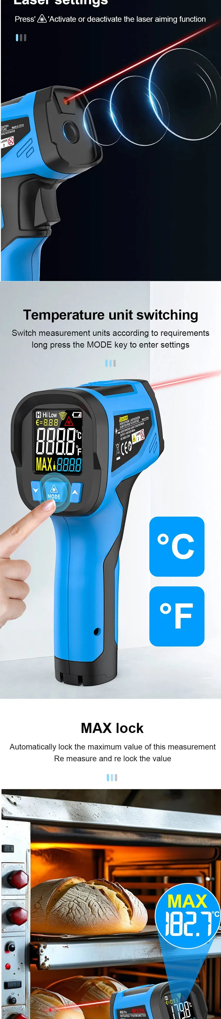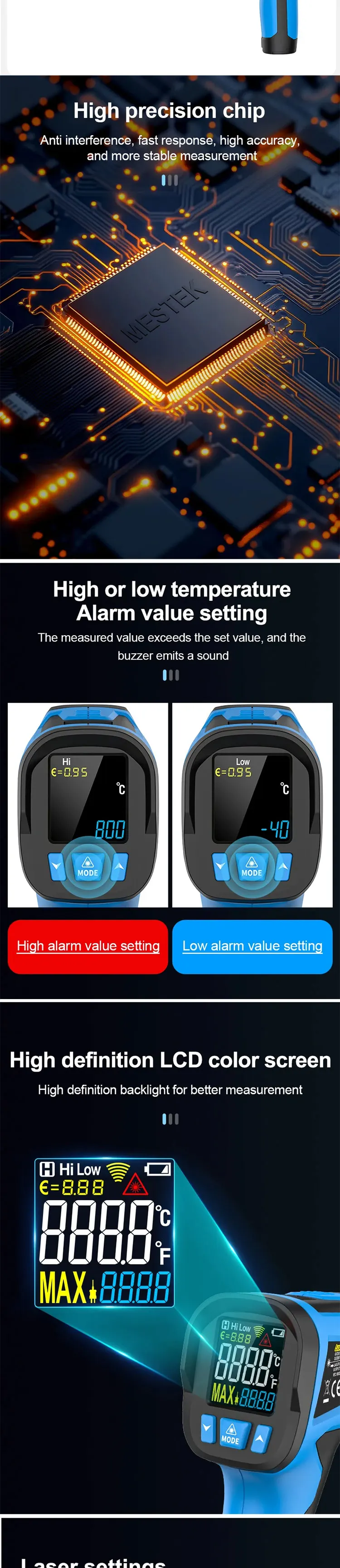 -50 to 800 Degree Mestek Digital Infrared Thermometer Laser Temperature Meter Non-contact Pyrometer Hygrometer IR Thermometer