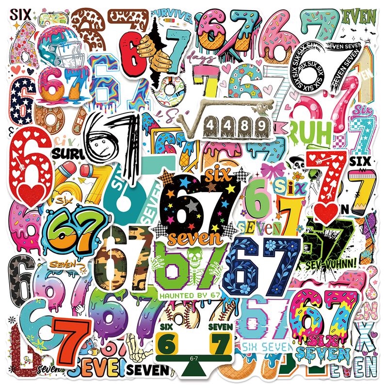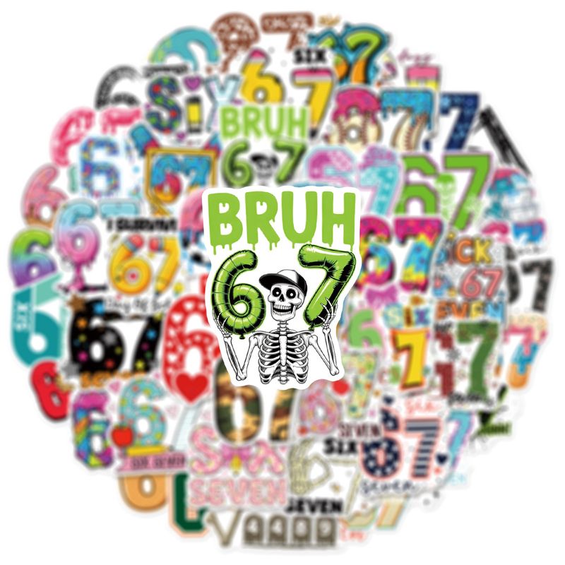 50/100 Pcs Unique Fun Colorful Number 67 Doodle Stickers DIY Game for Skate Helmet Cup Phone Waterproof Decals
