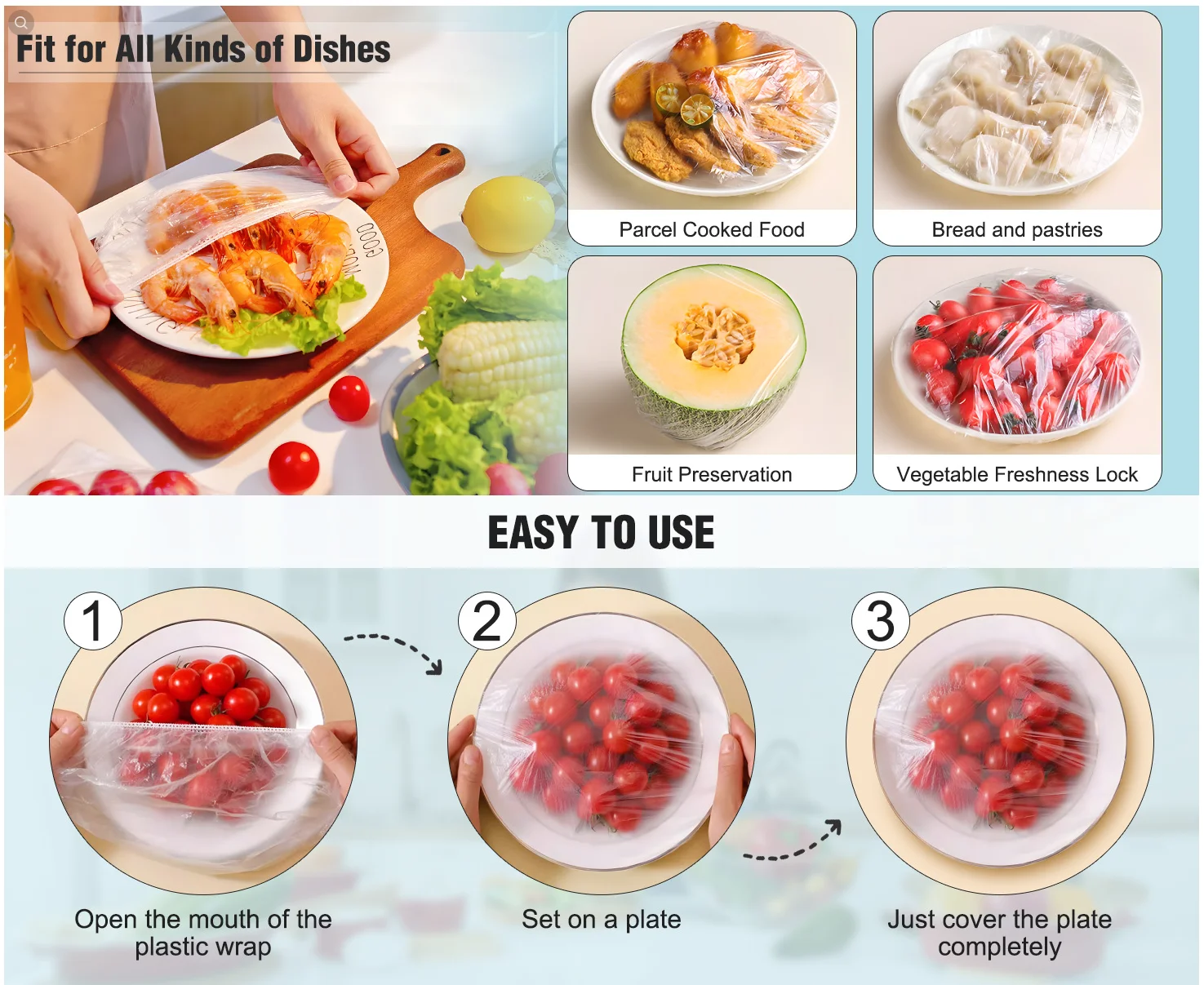 This is not only a food-grade disposable plastic wrap, but it can also be used as a disposable shoe cover to wrap your shoes when traveling or when you don't want to step on the dirty floor, and can also be used as a disposable head cover when cooking or taking a shower. Versatile and affordable. Allows you to spend the price of one item and get the functionality of three items.