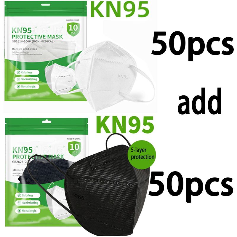 50/100pcs Black and White Masks Adult KN95 Masks Facial Travel Use Dustproof 5-Layer Breathable Design Adjustable Nose Bridge