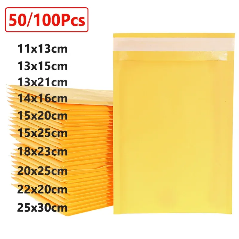 50/100pcs Kraft Paper Bubble Envelopes Padded Mailers Shipping Envelope Self Seal Shipping Packaging Bag Courier Storage Bags