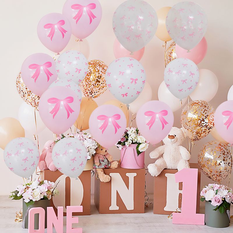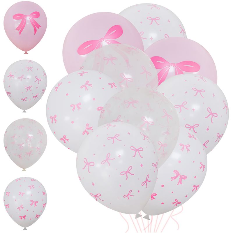 50/10pcs Bow Theme Latex Balloon 12 Inches Bowknot Print White Balloons for Kids Girls Birthday Baby Shower Wedding Party Decor