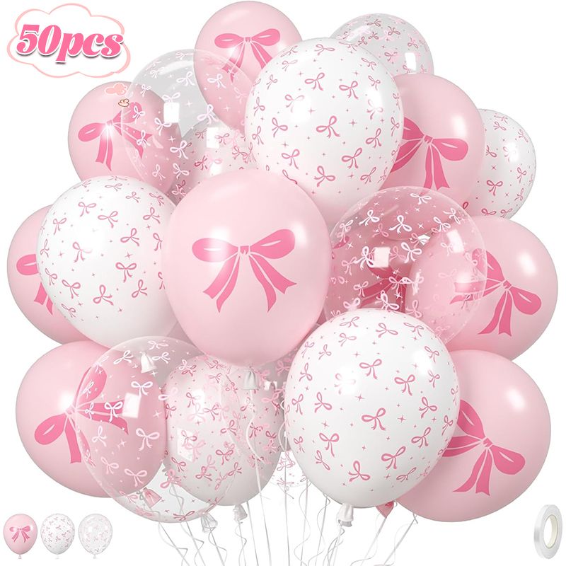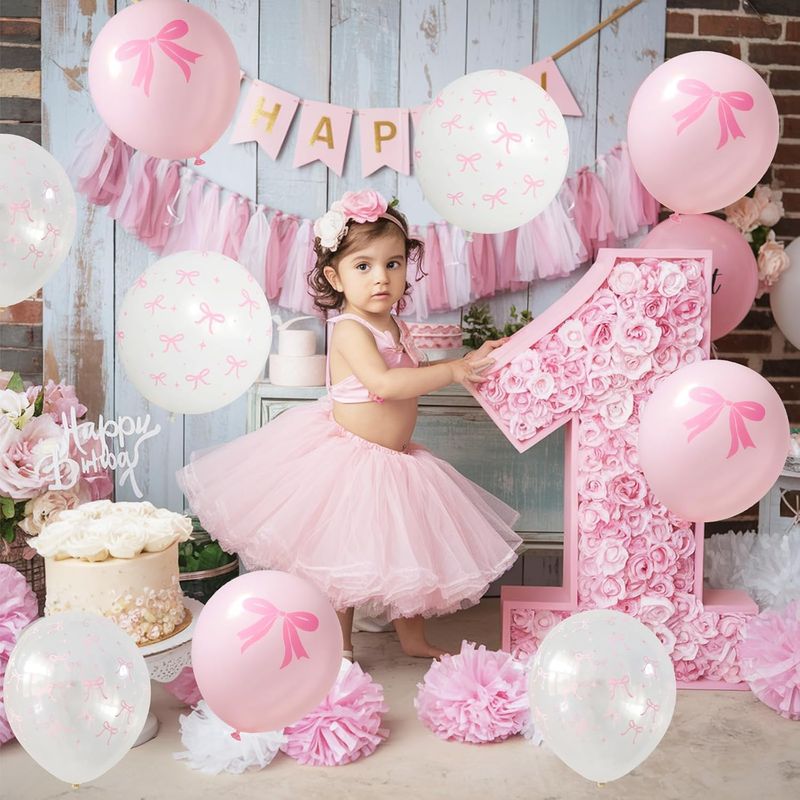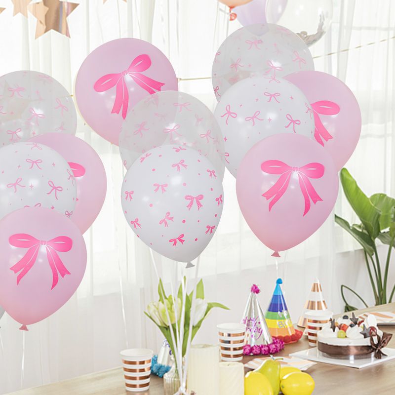 50/10pcs Bow Theme Latex Balloon 12 Inches Bowknot Print White Balloons for Kids Girls Birthday Baby Shower Wedding Party Decor