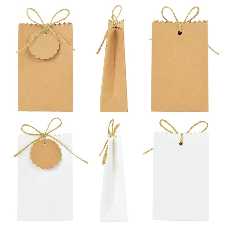 50/10pcs Kraft Paper Gift Box with Rope Retro Candy Cookie Bag Wedding Favors Birthday Party Supplies Christmas Gift Packaging