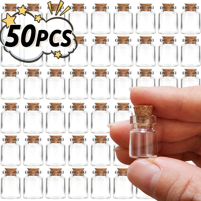 50/10pcs Mini Clear Glass Bottles with Cork Spice Message Vials Empty Wish Bottle DIY Drifting Empty Tiny Jars Party Decorations