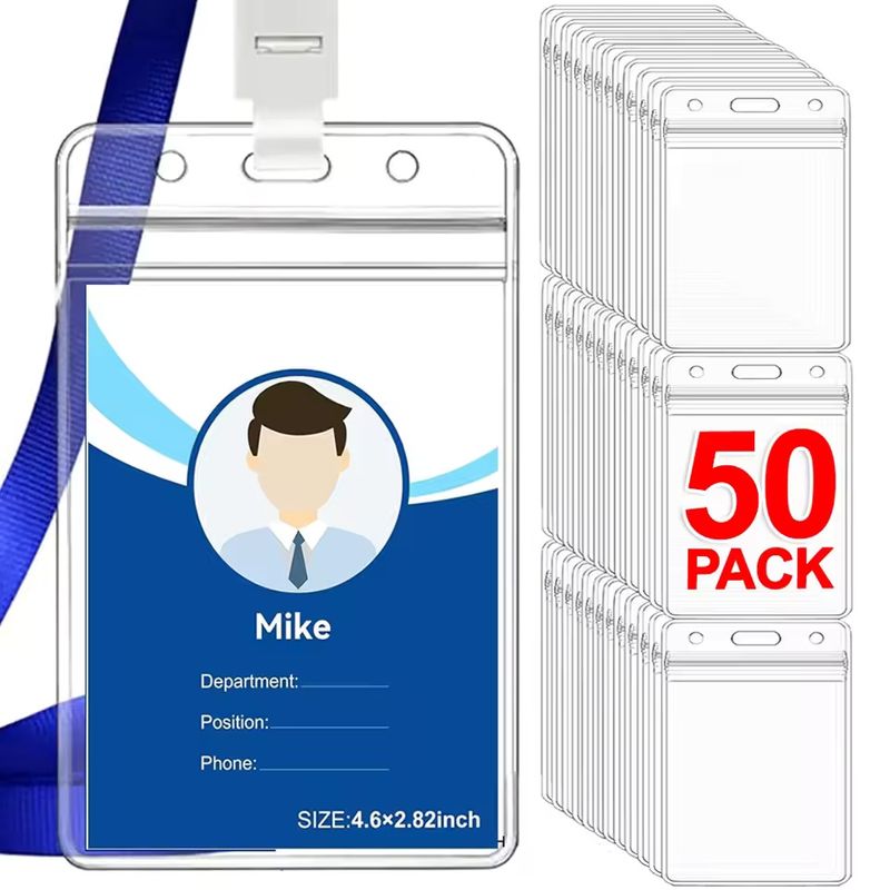 50/40/10/1PCS Transparent Name ID Badge Holder Waterproof Thick Vertical Business Card Holder Protectors with Resealable Zip