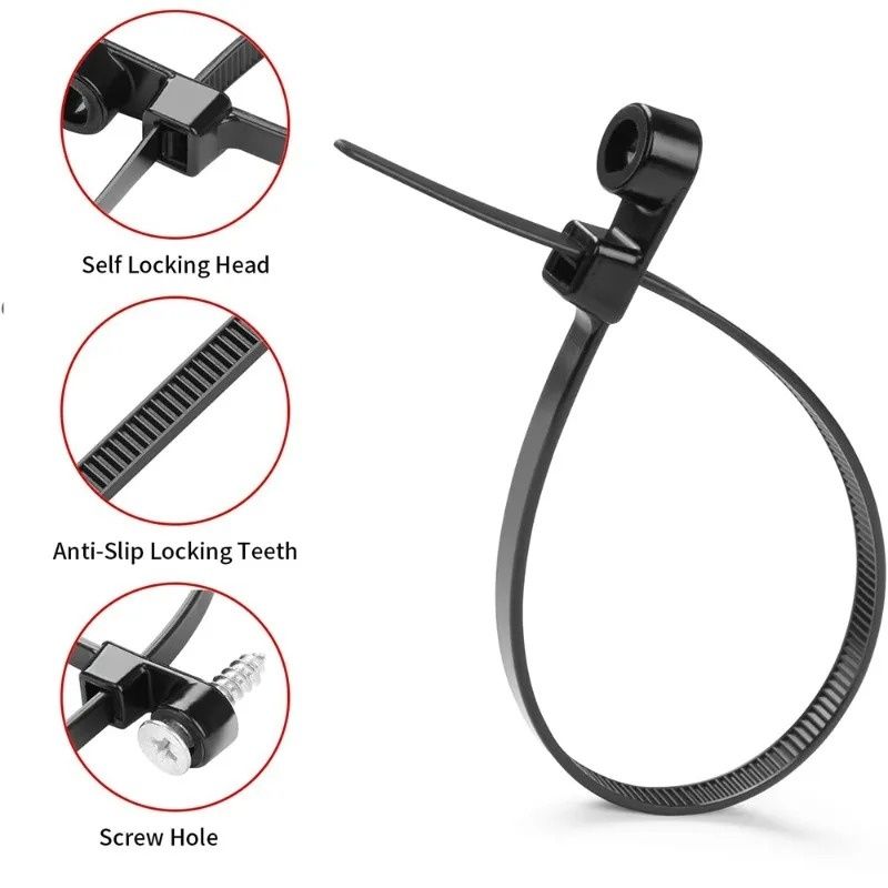 Mountable Cable Ties with Screw Hole Nylon Self Locking Loop Wraps Bundle Fixed Cables Ties Wire Fastening Organizer Straps