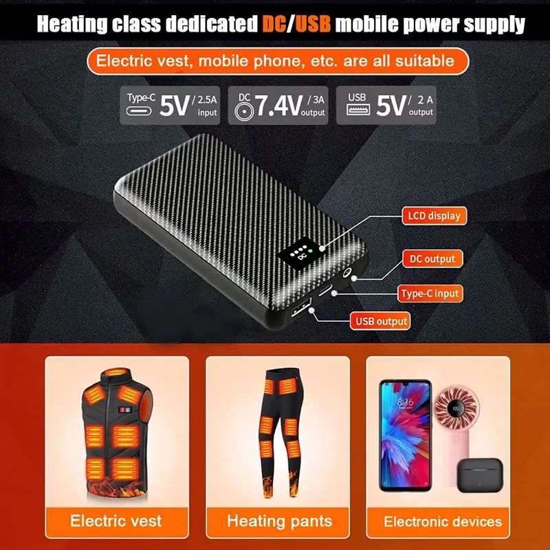 50000mAh Powerbank for Heating Vest Jacket Gloves Heated Auxiliary Battery DC 7.4V Portable PowerBank Electric Heating Equipment