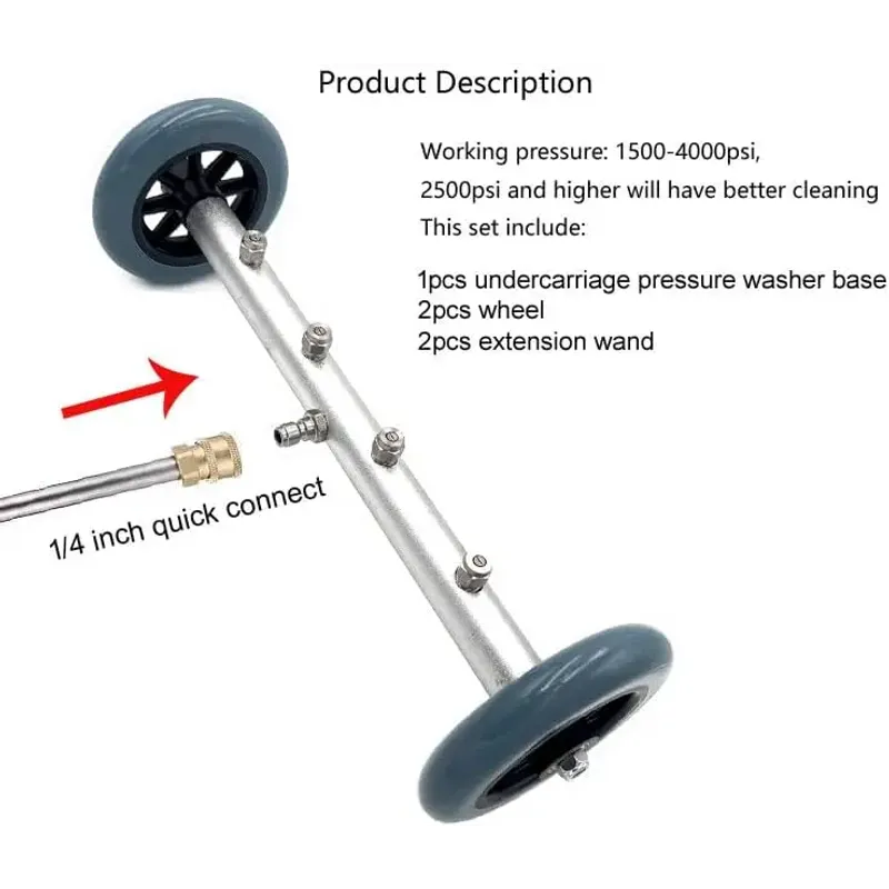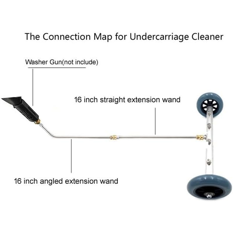 INCLUDE:Pressure Washer Undercarriage Cleaner, 1-piece 16 inch angled extension wand and 1-pieces 16 inch straight extension wand. All parts have 1/4 inch Quick Connect.