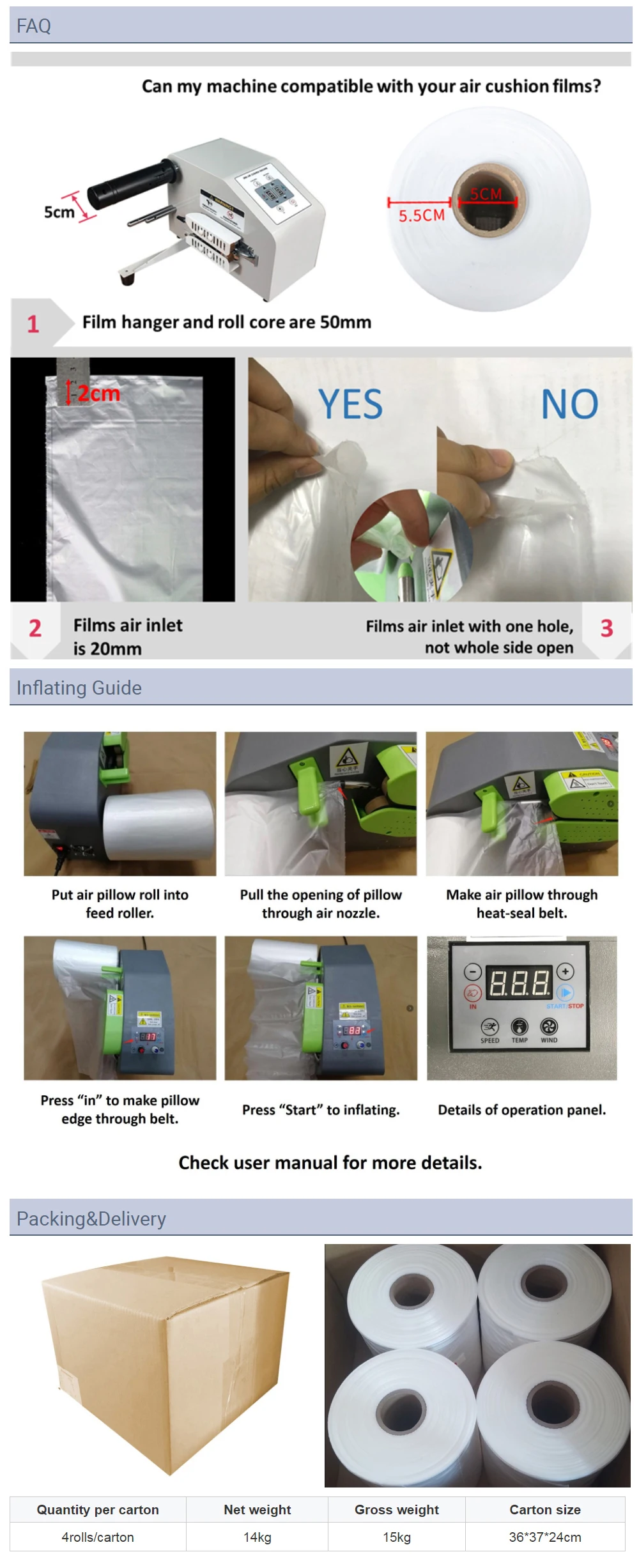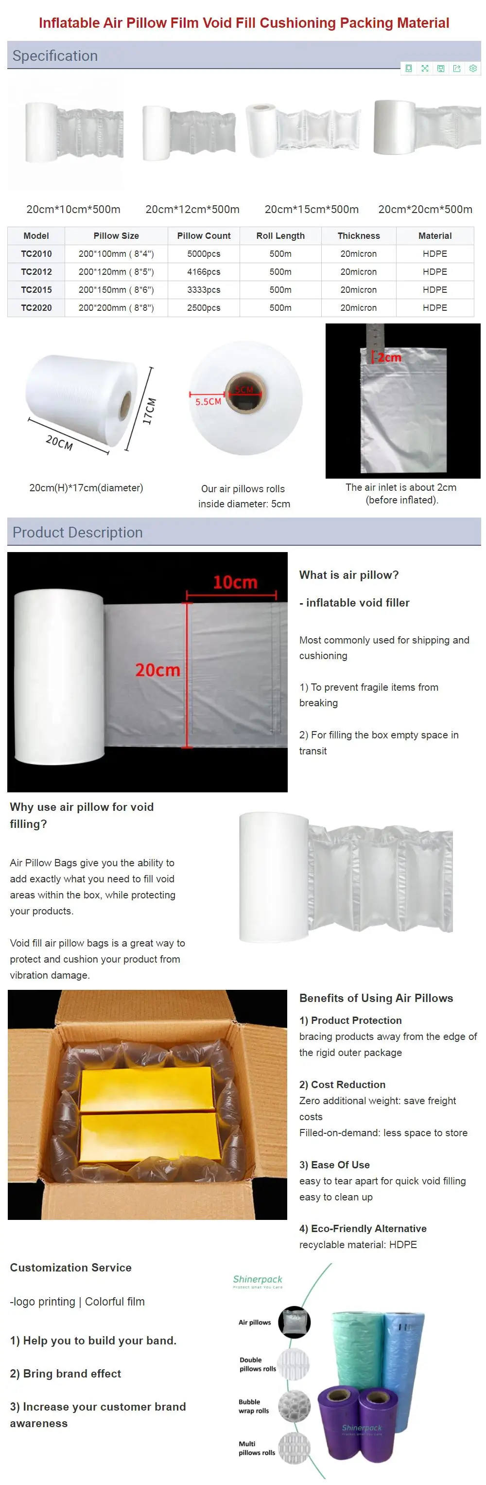 500M Buffer Air Cushion Machine Inflatable Bag Filled Airbag Package Shockproof Roll Film Bubble 20 * 10cm 20 * 15cm 20 * 20cm