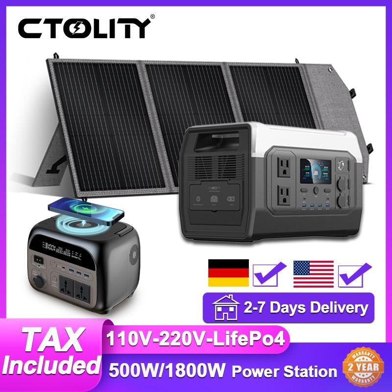 500W 1800W Power Station With 100W Solar Panel 18V USB TYPE-C Portable Power Bank 345Wh 1000Wh Lifepo4 Battery Charging Station
