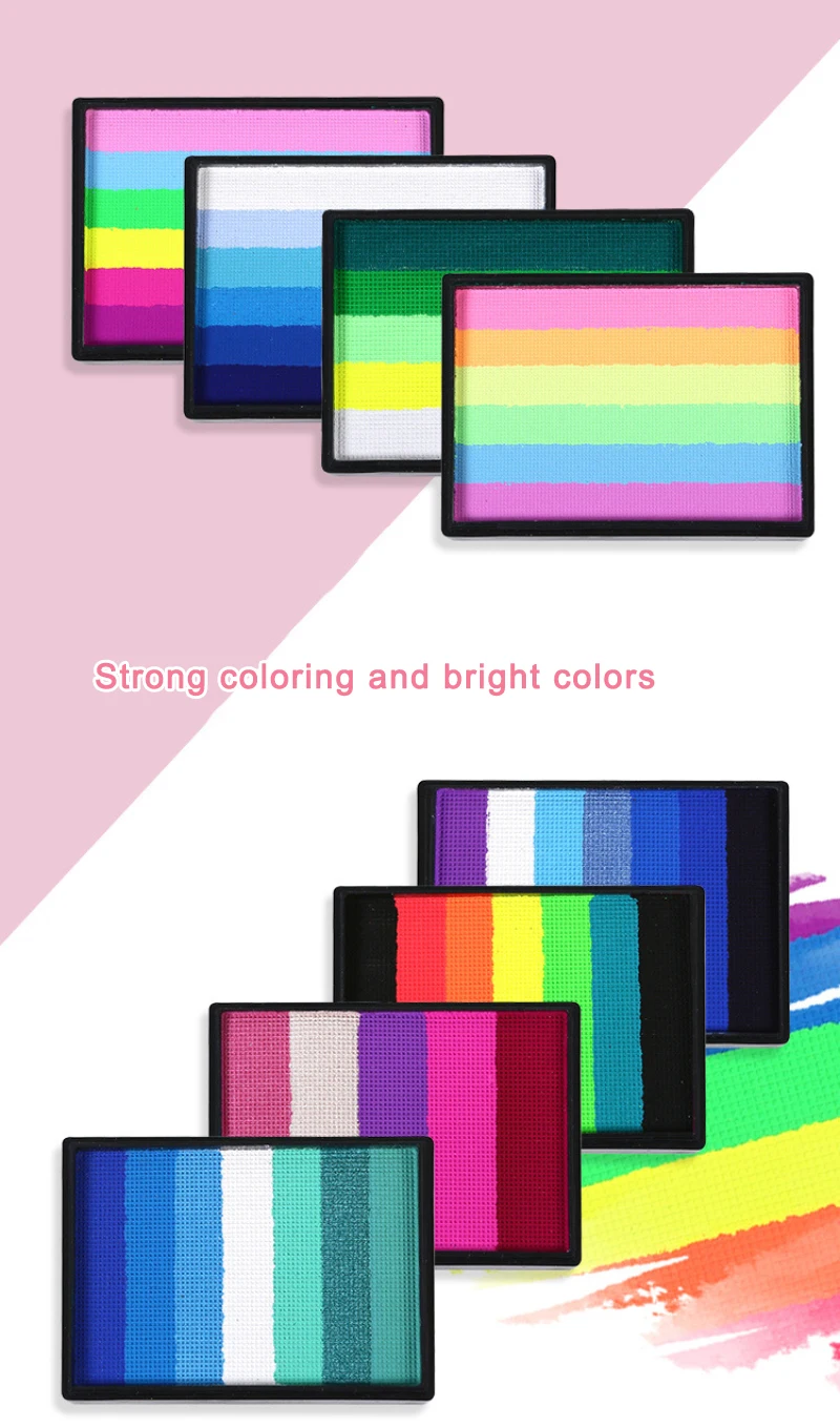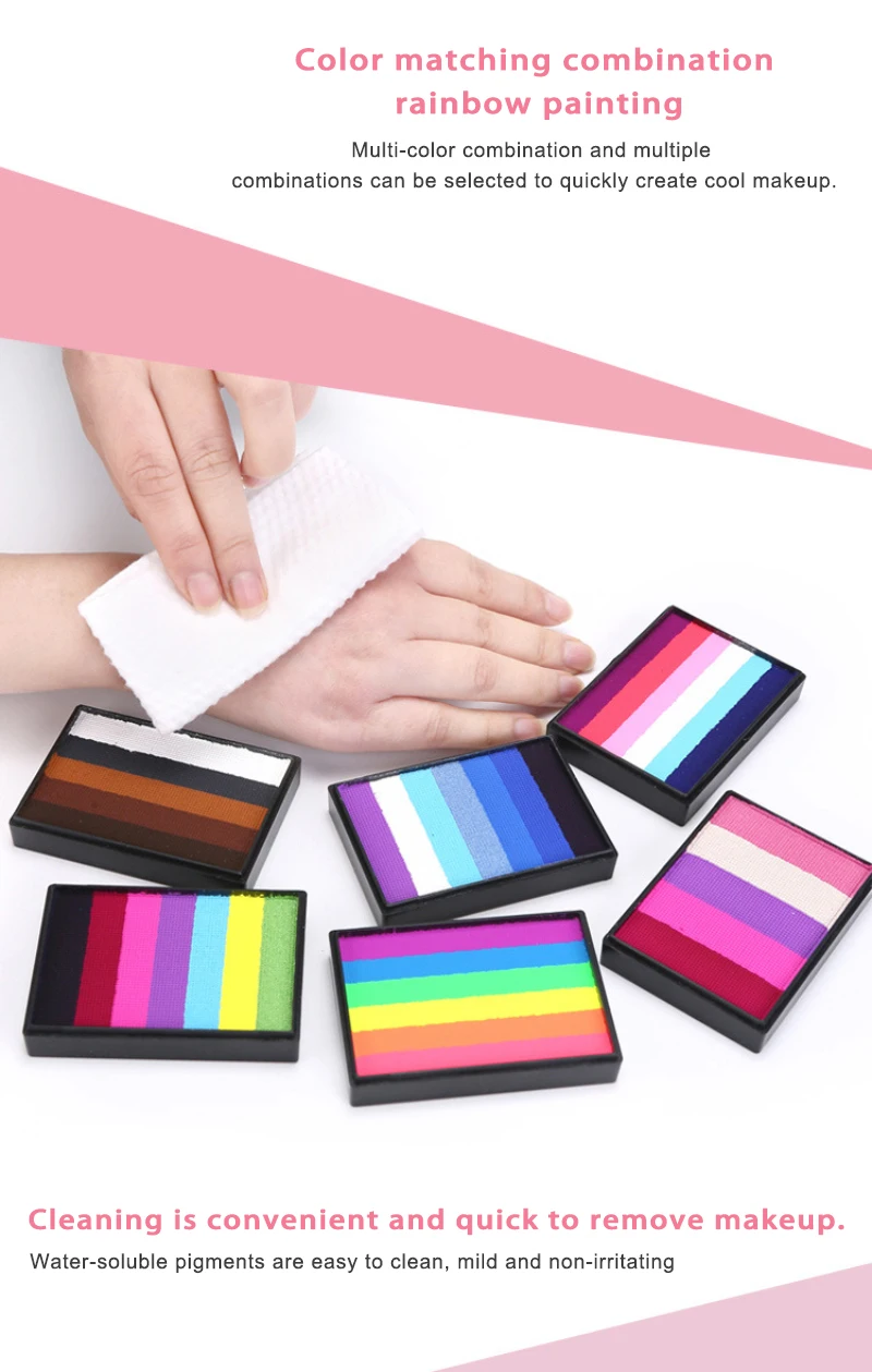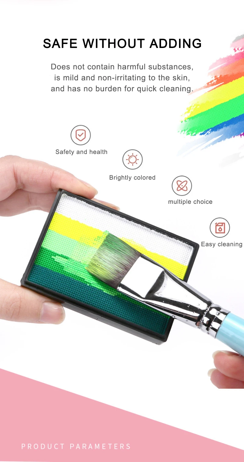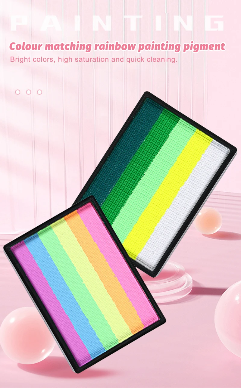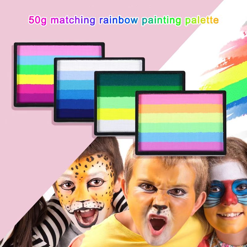 1. Safe and practical: the 50g rainbow palette, bright colors, smooth, excellent coverage. This face and body painting palette is made of durable paint material and can be used by adults and children.