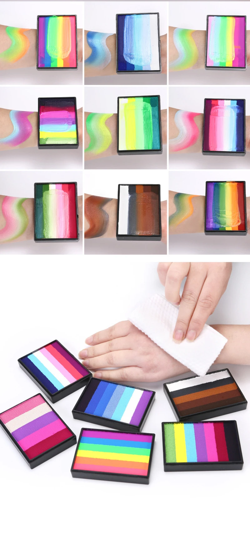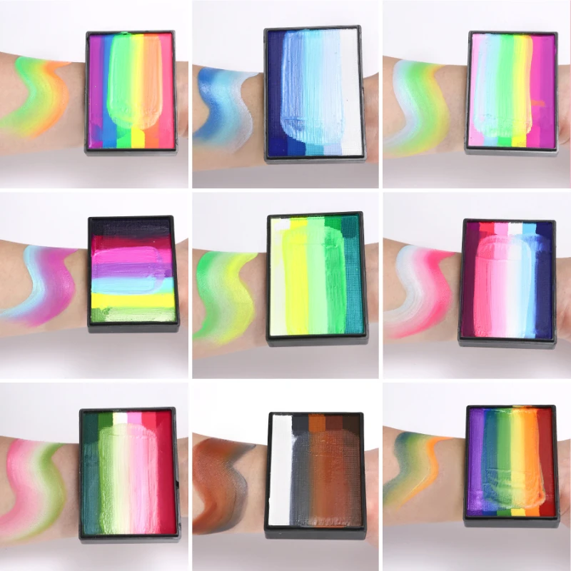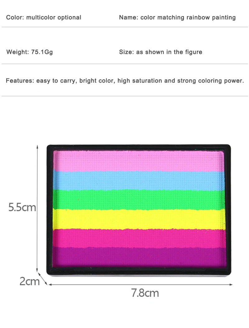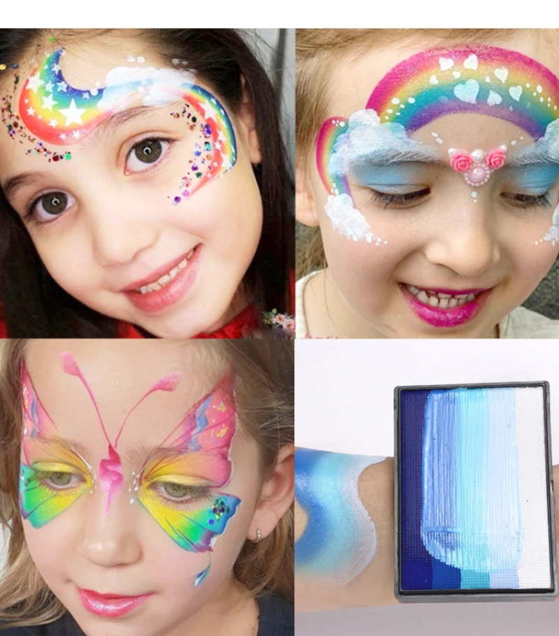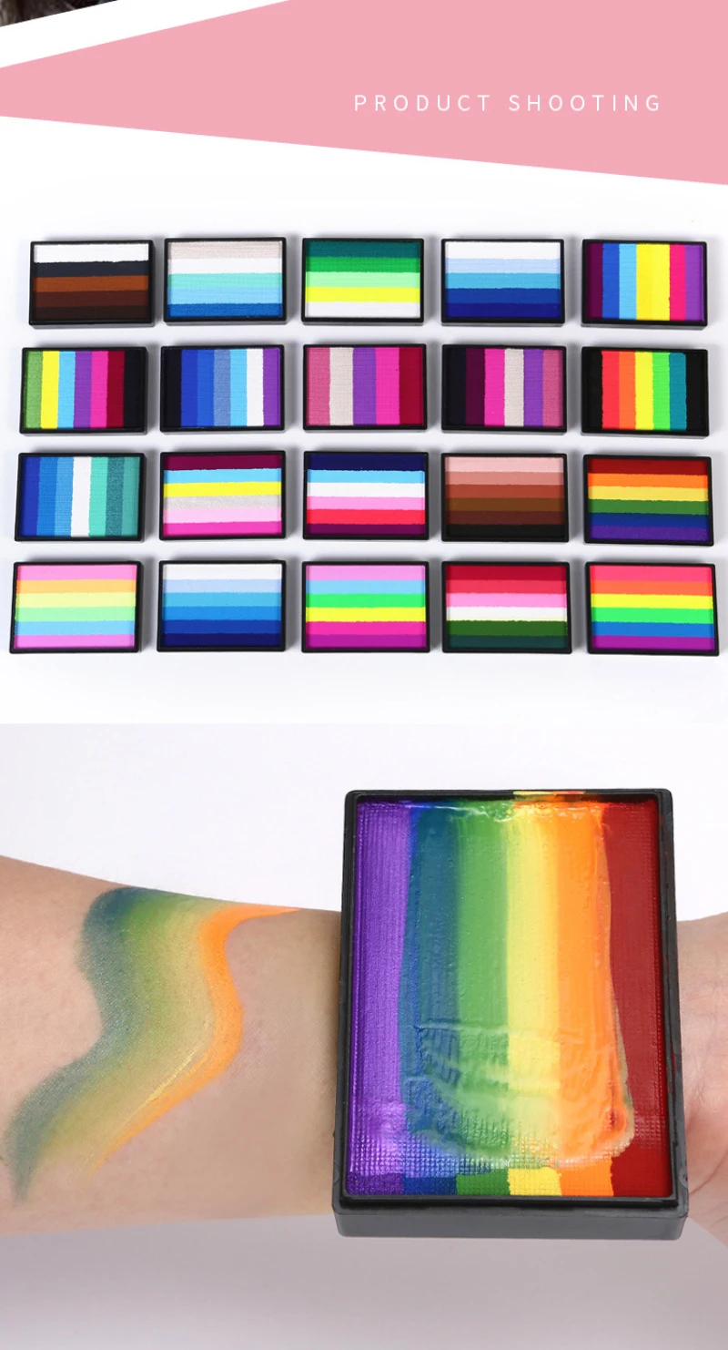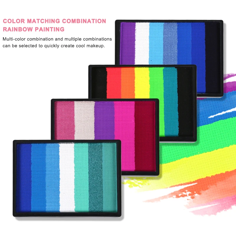 1. Safe and practical: the 50g rainbow palette, bright colors, smooth, excellent coverage. This face and body painting palette is made of durable paint material and can be used by adults and children.