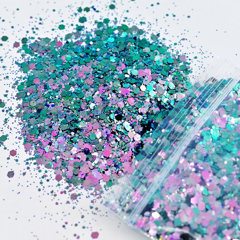 50G/Bag Holographic Mixed Hexagon Shape Chunky Nail Glitter Sequins Sparkly Flakes Slices Manicure Body/Eye/Face Glitter TCF2335
