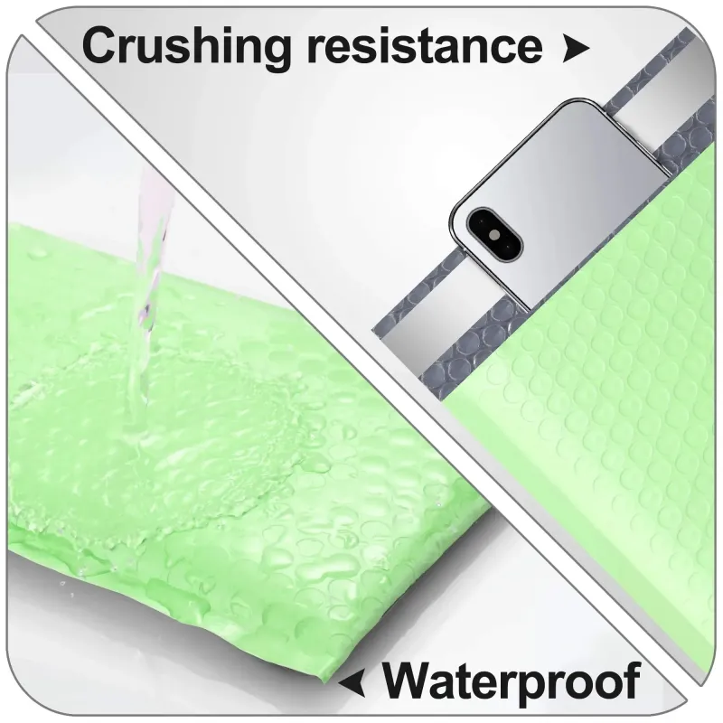 【Durable Structure】: The polyethylene bubble mailing bag is designed with a sturdy seal around it to prevent punctures and prevent tearing or damage during transportation. Bubble envelopes are waterproof and can prevent items from getting wet.