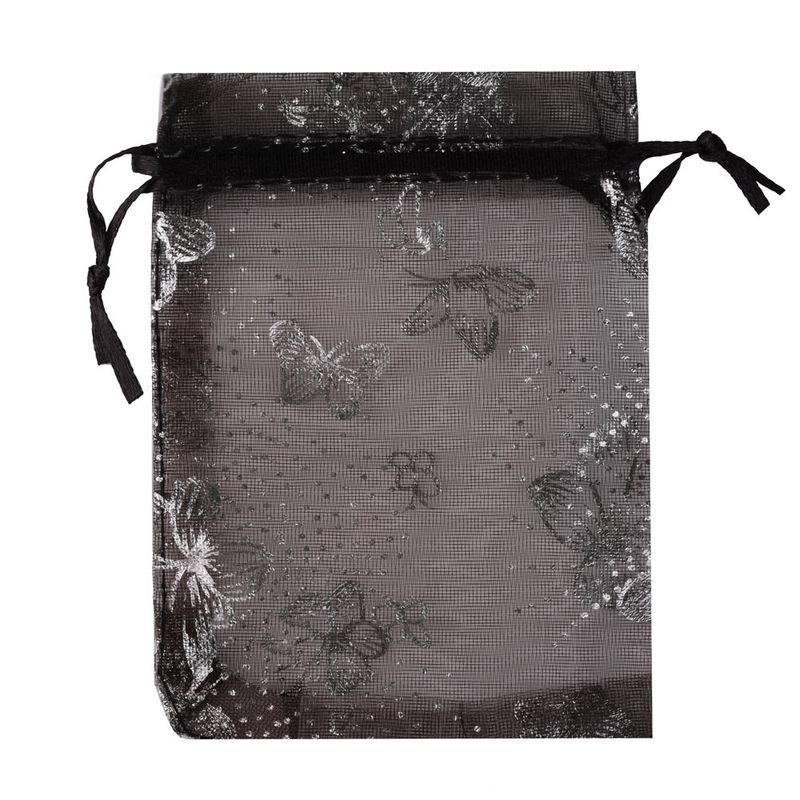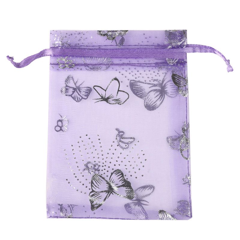 50pcs 7x9cm 13x18cm Organza Bags Silver Color Butterfly Printed Jewelry Wedding Party Drawable Packaging Display & Gift Pouches