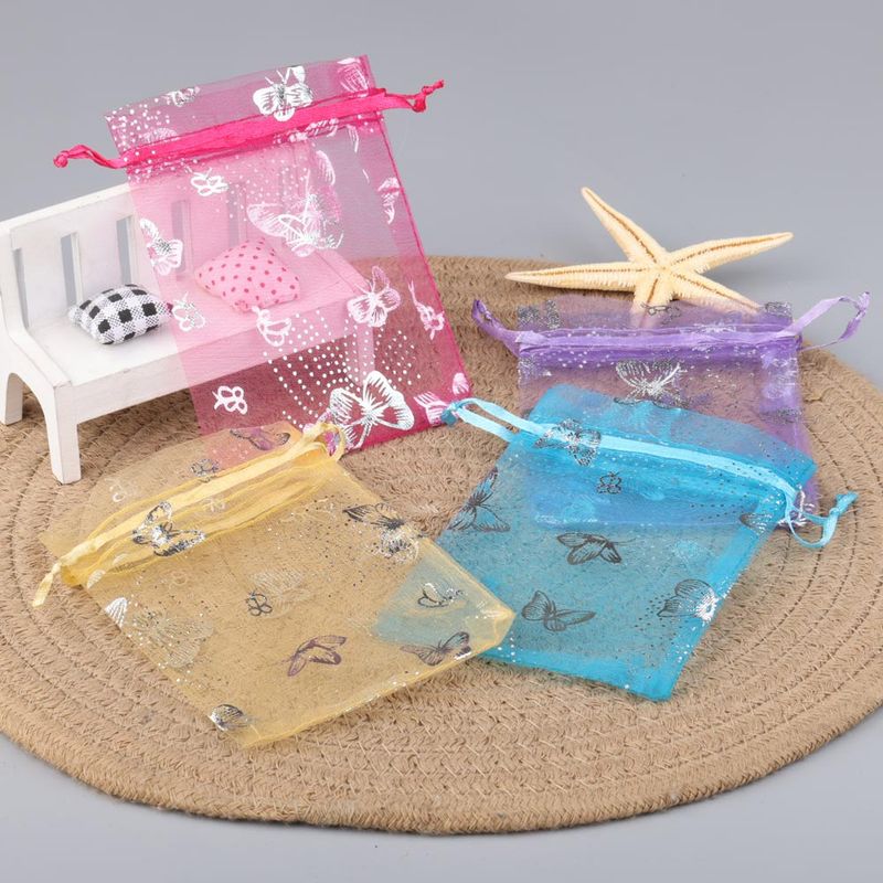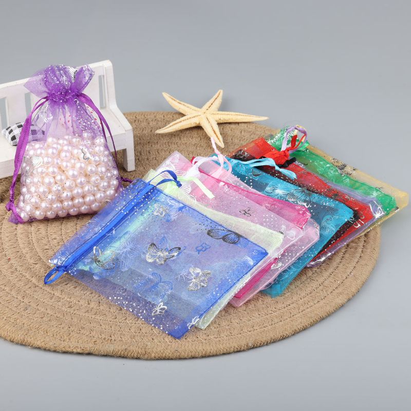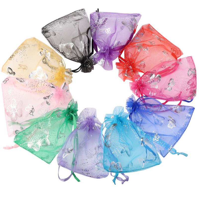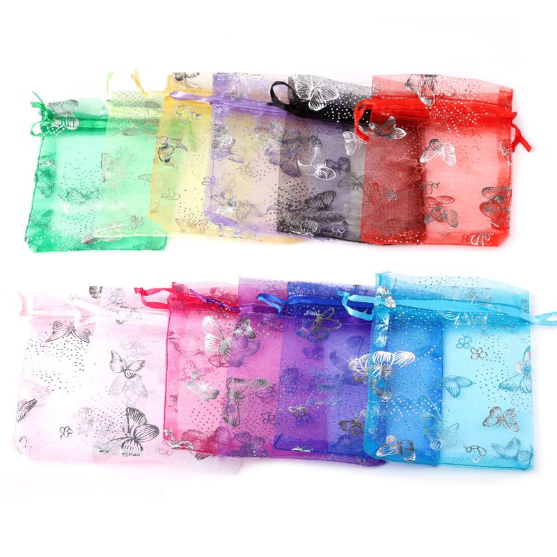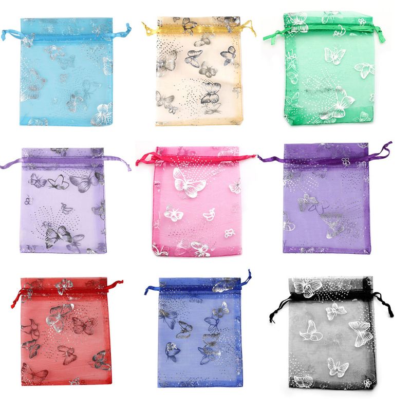 · Name:50pcs 7x9cm 13x18cm Organza Bags Silver Color Butterfly Printed Jewelry Wedding Party Drawable Packaging Display & Gift Pouches