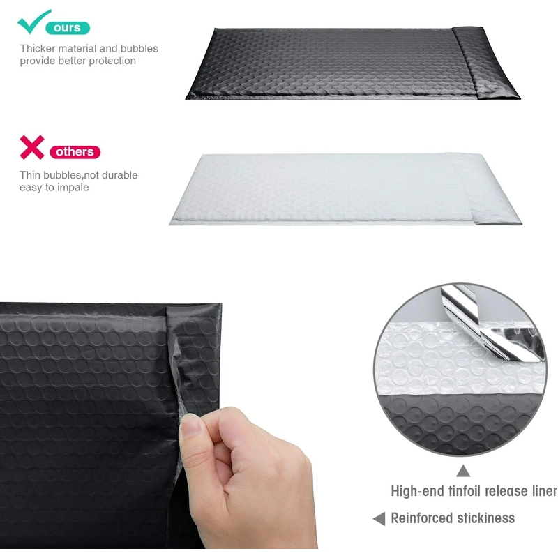 【Strong Self Sealing Adhesive】 Our padded envelopes is using four-season adhesive, which can maintain strong stickiness throughout the year, even if the weather is very hot or cold. The strong stickiness prevents your items from being secretly replaced during transportation. The adhesive is covered with silver strip, which are easily peel off the strip and seal the bag.