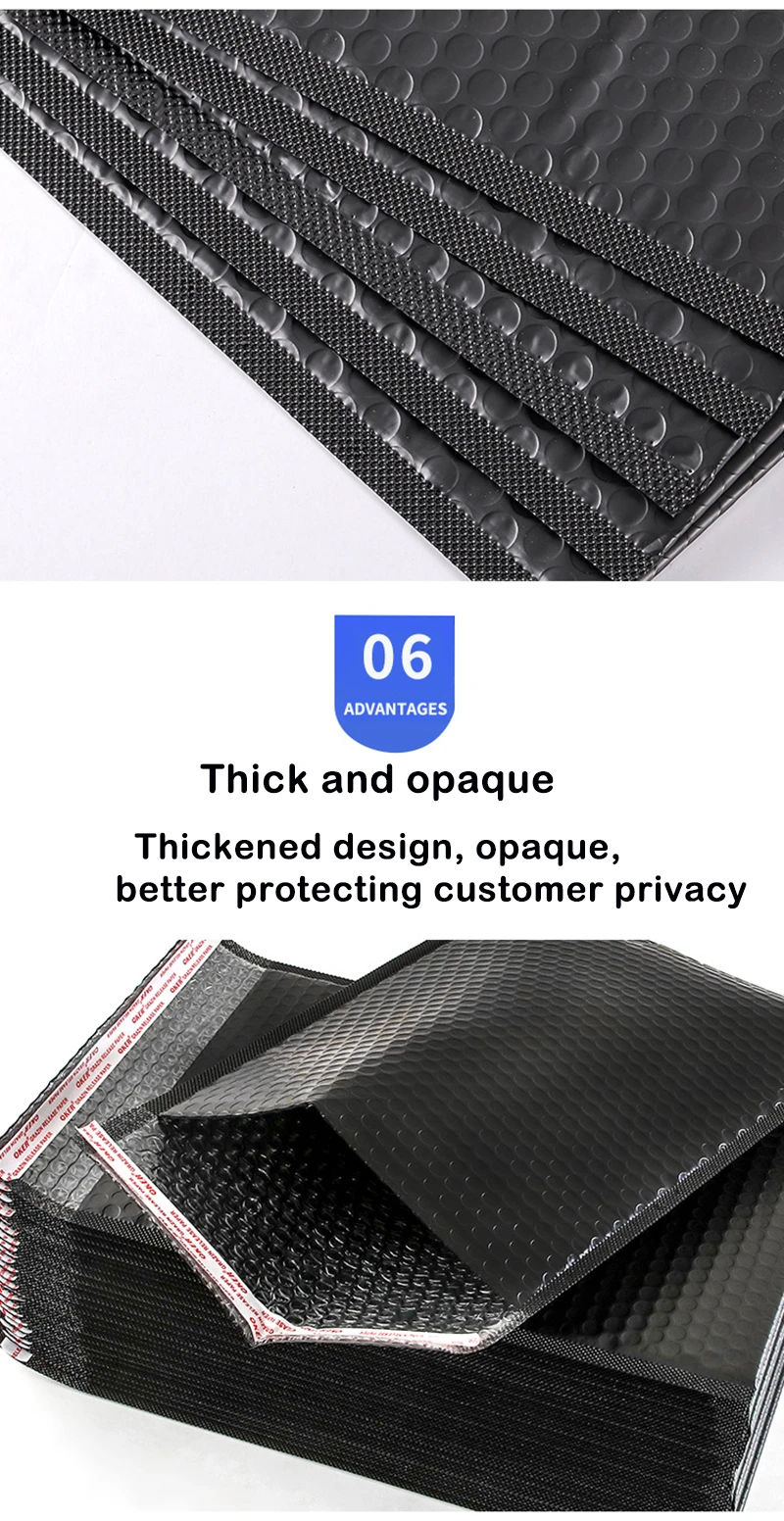 4. Self-Adhering Envelopes: The matt black poly bubble mailers come with a self-adhesive tamperproof seal. Once the envelope has been sealed, it cannot be opened without visible signs of tampering. The smooth surface of the mailers makes it easy to stick stamps and address labels.