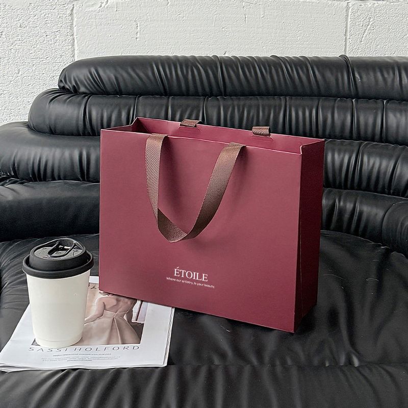 50pcs Custom Logo High-End Hot Stamping No creases Gift Paper Bags for Clothing Boutique Logo Printing Shopping Bags