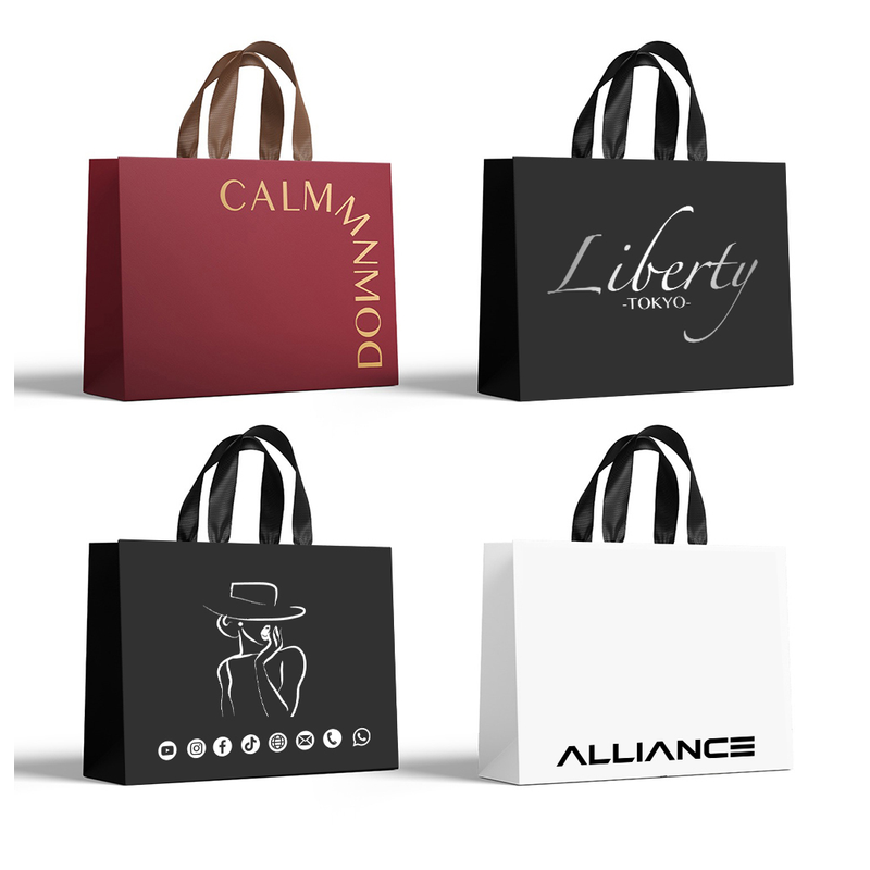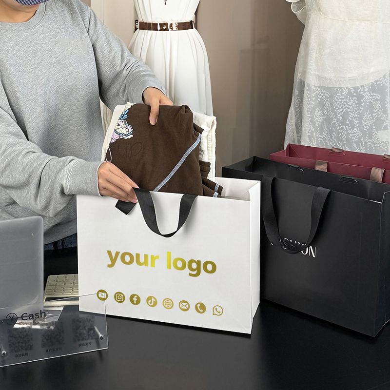 50pcs Custom Logo High-End Hot Stamping No creases Gift Paper Bags for Clothing Boutique Logo Printing Shopping Bags