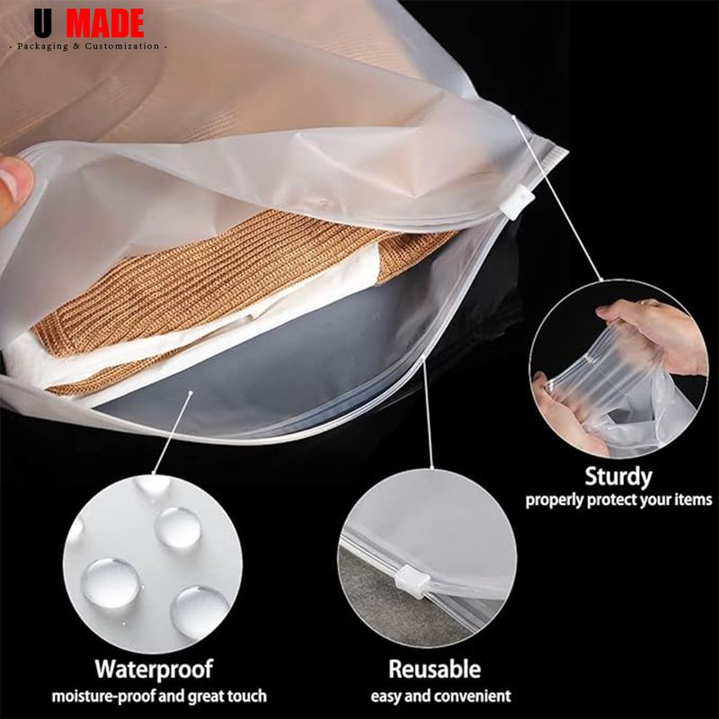 50pcs Custom Slide Zip Plastic Bags with Logo Matte Frosted Zipper Bag Personalized for Packaging Business Shipping Storage