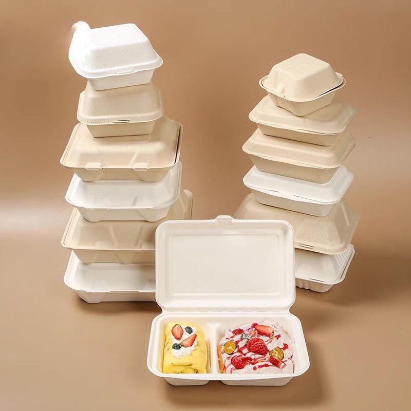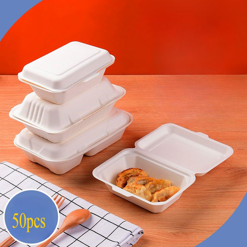 50pcs Disposable Paper Pulp Fast Food Box Dessert Cake Rice Biodegradable Bento Boxex Food Grade Takeaway Packaging Box with Lid