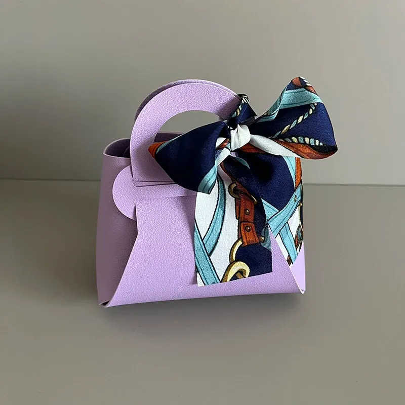 50PCS Creative Leather gifts Box With ribbon Wedding Favors and Candy Boxes For Birthday Party Supplies Chocolate Box Package
