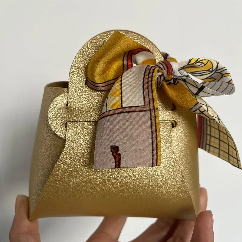 50PCS Creative Leather gifts Box With ribbon Wedding Favors and Candy Boxes For Birthday Party Supplies Chocolate Box Package